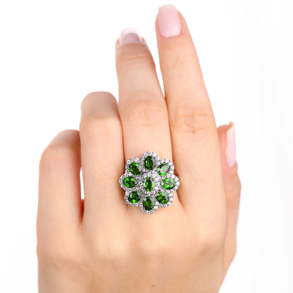 As pedras preciosas dão um charme extra à produção, formato delicado e luminoso pelos diopsídios cromos verdes.