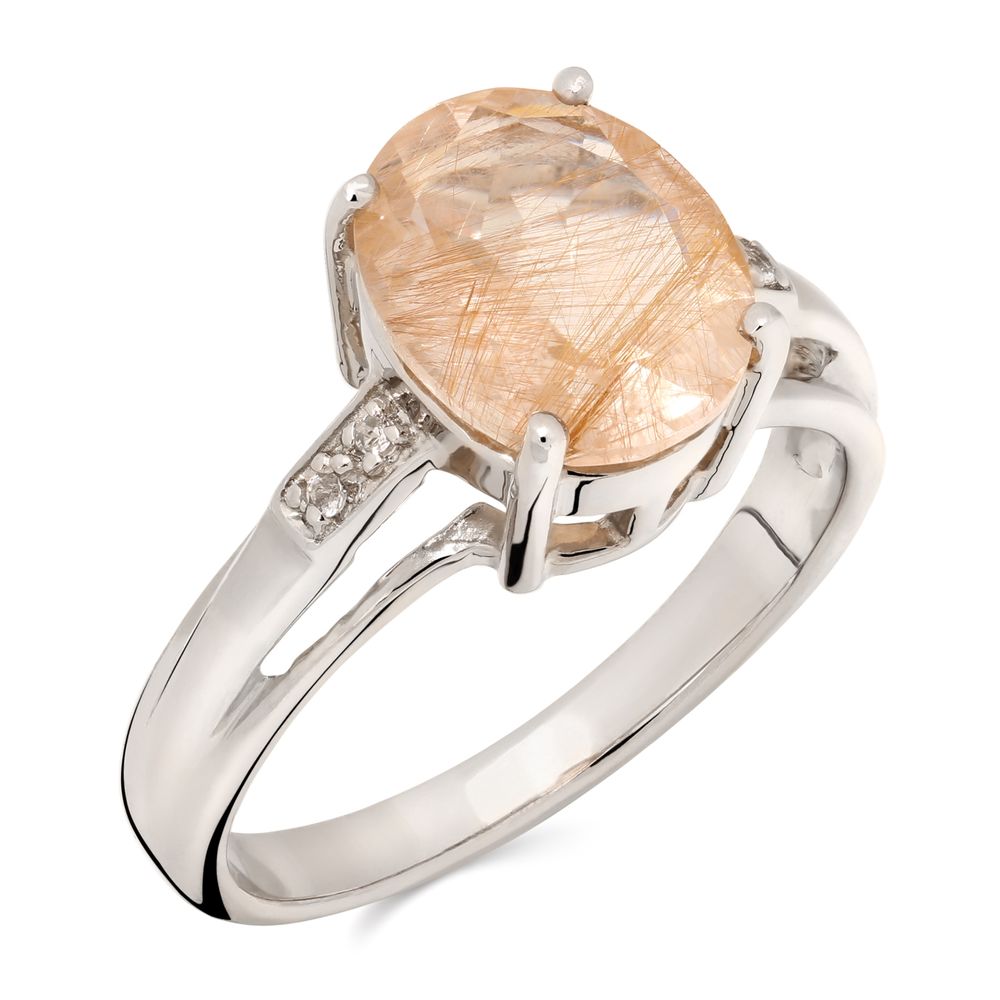 Em pedras: Quartzo Rutilado (1,85 cts) e Topázios Brancos