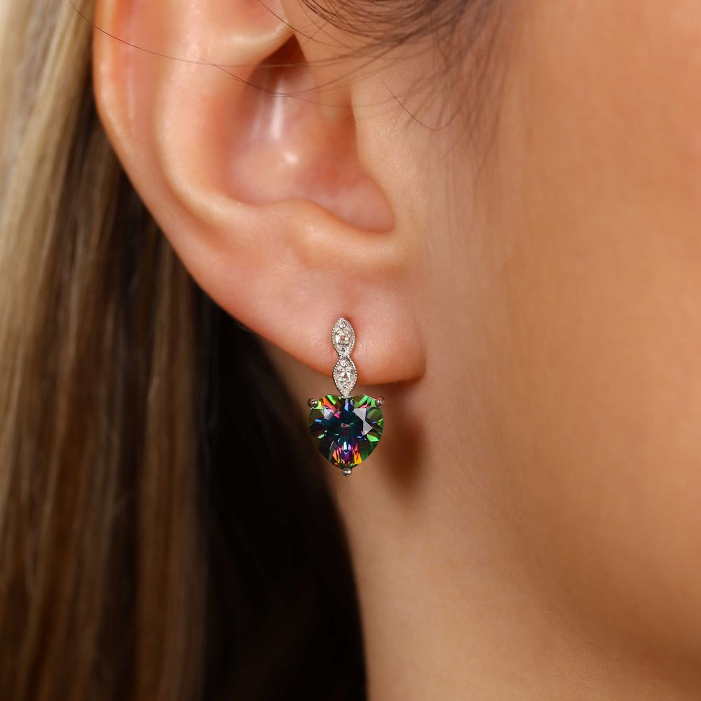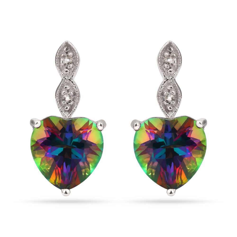 Par de Brinco de Prata Coração com Topázios Misticos e Topázios Brancos