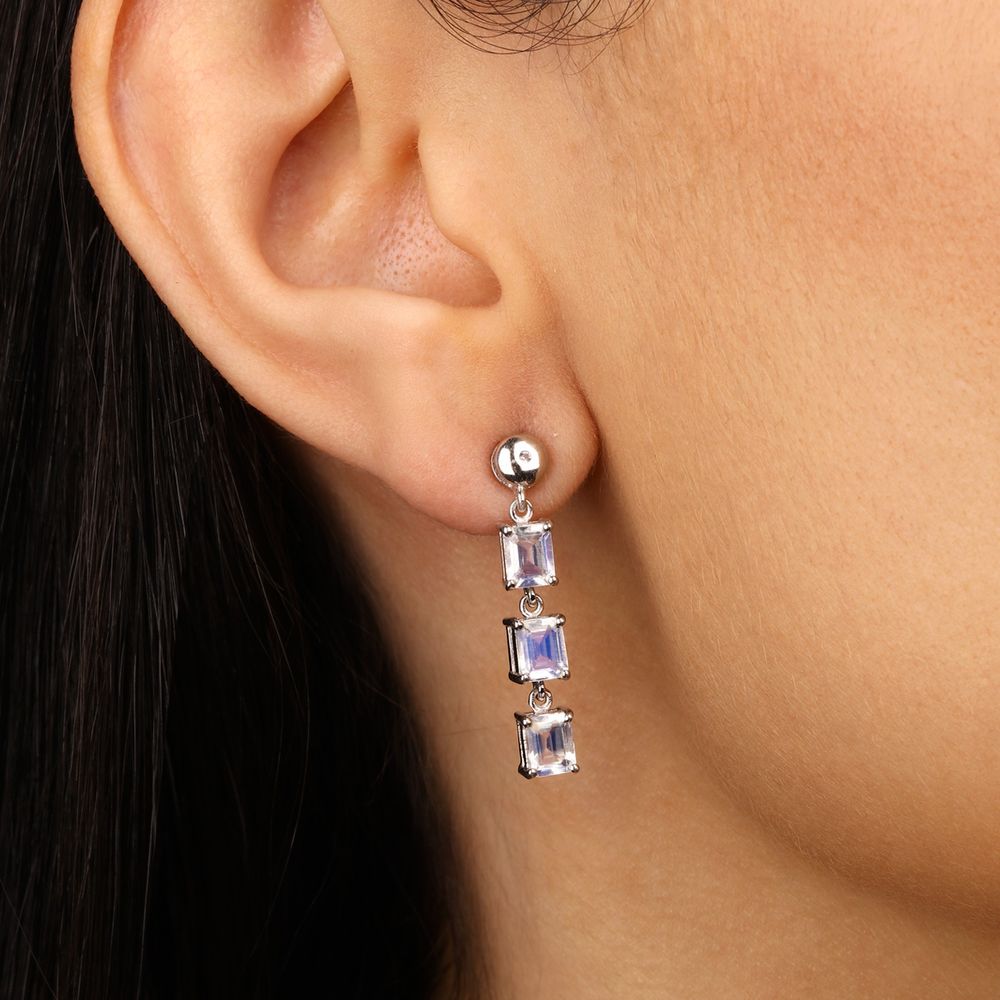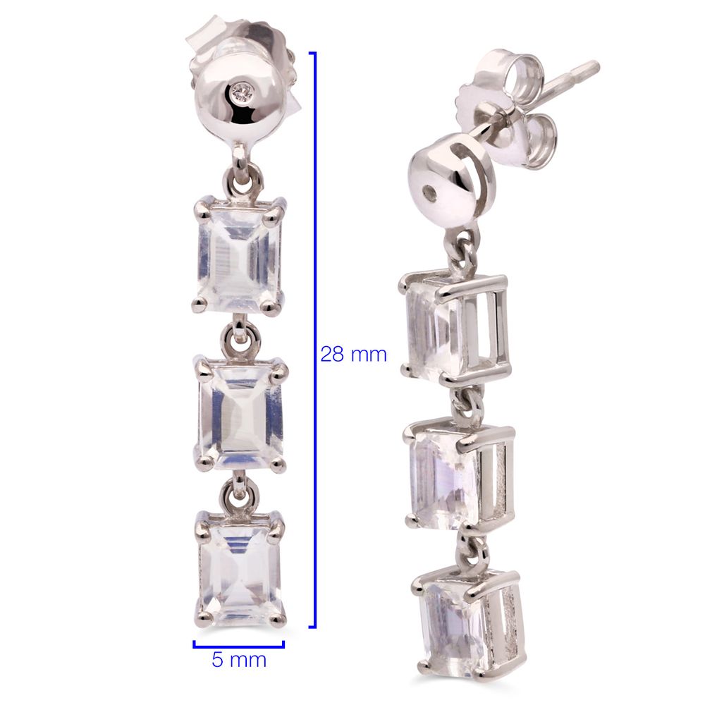 Par de Brinco Com Pedra da Lua e Topázio Branco Prata