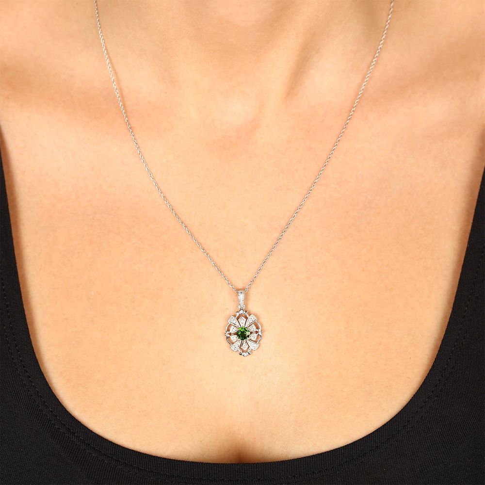 Pingente em Prata 925 com Cromodiopsides e Topázio Branco - 155769