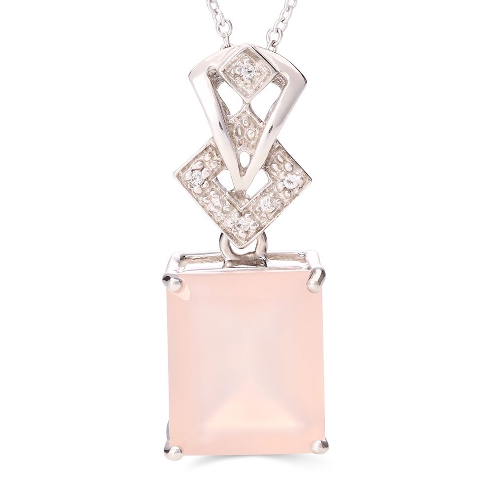 Em pedras: Calcedônia Rosa Retangular (Aprox. 4,85 cts) e Topázios Brancos