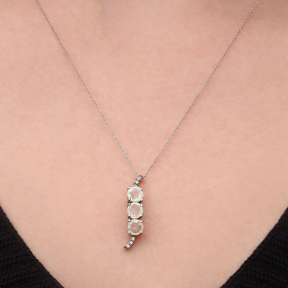 Pingente em Prata 925 com Topazio Kiwi e Topazios Brancos