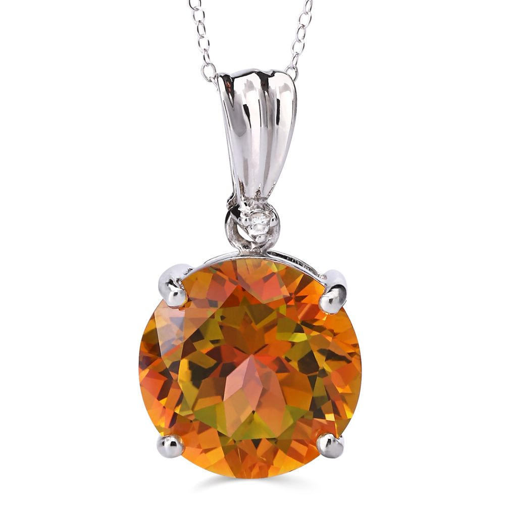 Este pingente destaca o fascínio do topázio místico, com seu espetáculo de cores que parecem dançar à luz, realçado pela pureza do topázio branco.