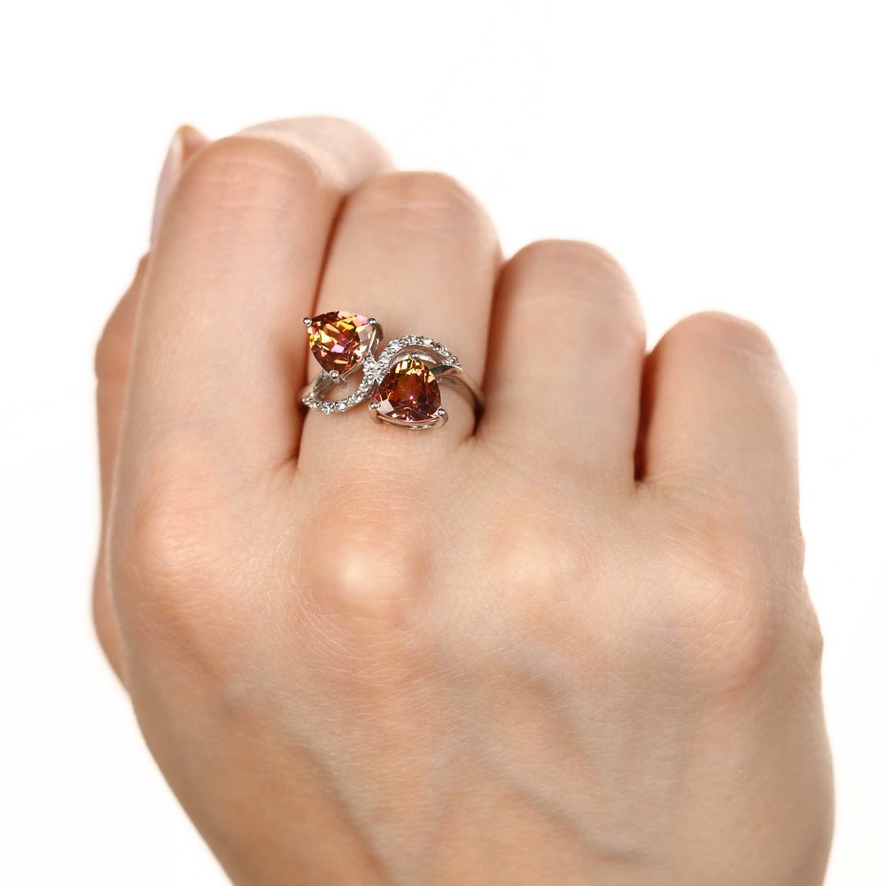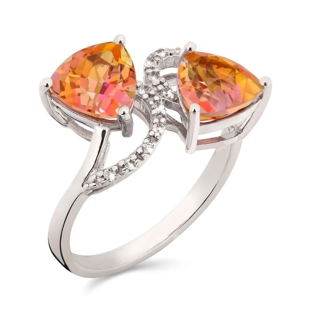 Anel de Prata Delta com Topázios Misticos e Topázios Brancos