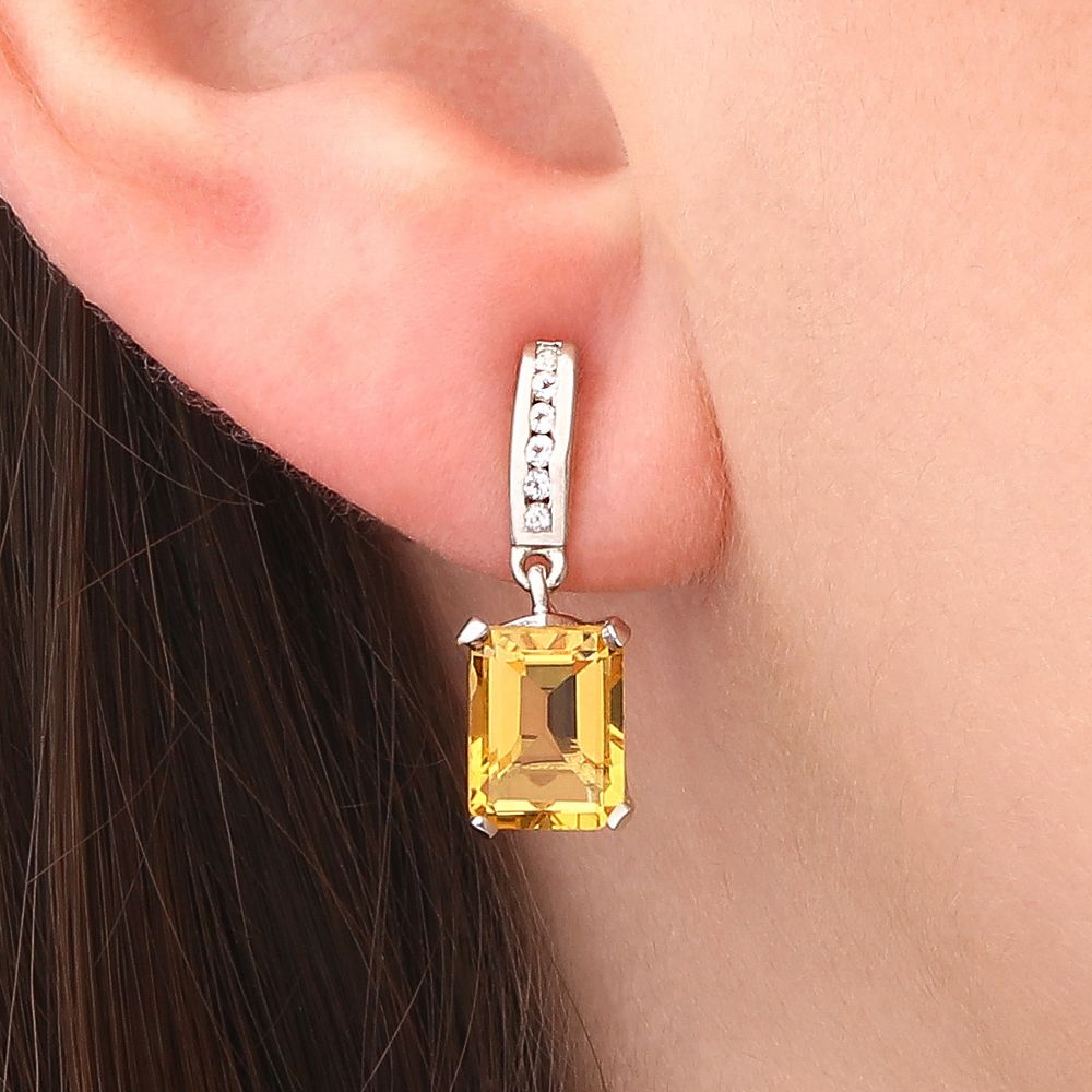 Par de Brincos em Prata 925 com Citrinos e Topázios Brancos