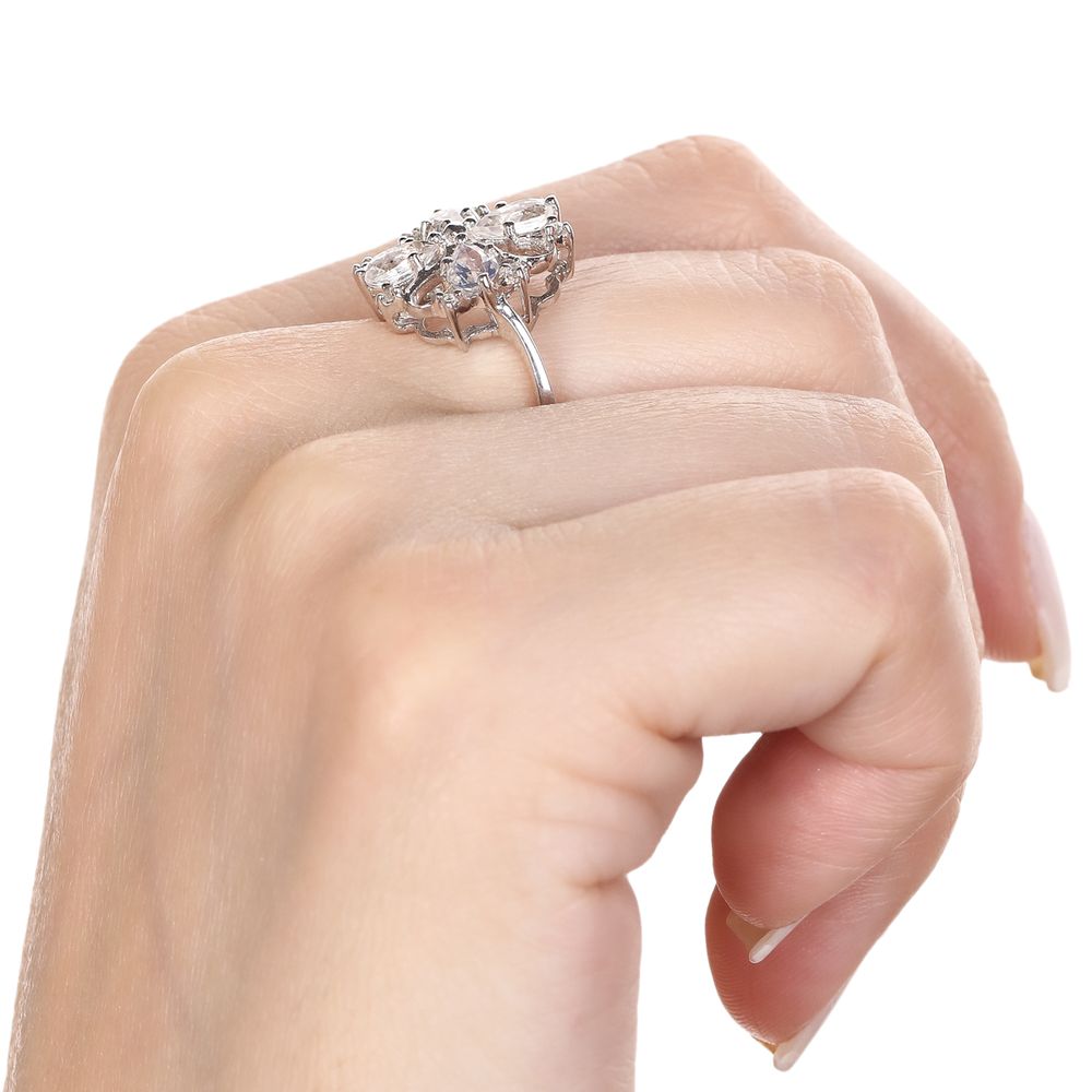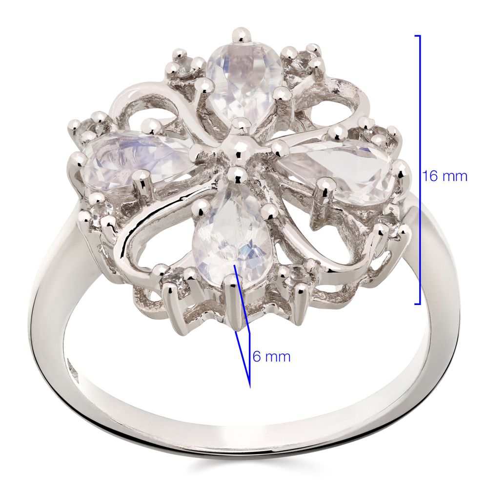 Em pedras: Pedra da Lua (1 ct) e Topázios Brancos