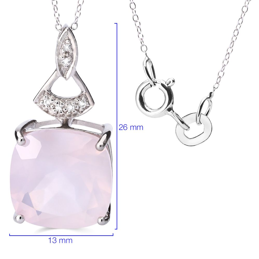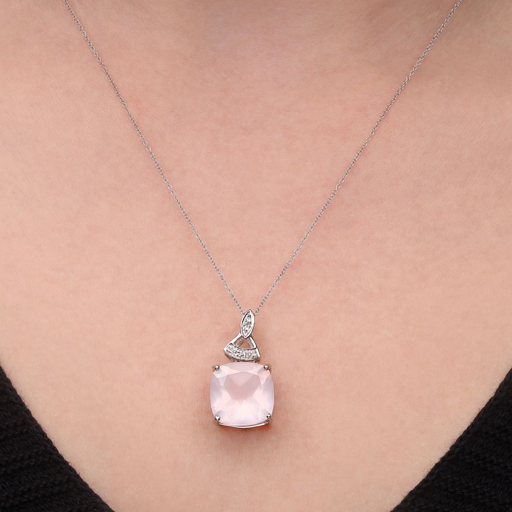 Este pingente une o romantismo suave do quartzo rosa à elegância do topázio branco, formando uma joia que transmite afeto e beleza.