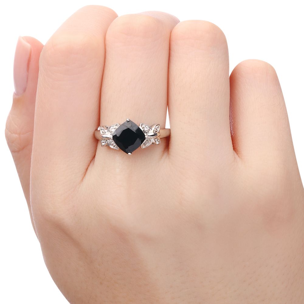 Anel em Prata 925 com Black Spinel e Topázios Brancos - 163397