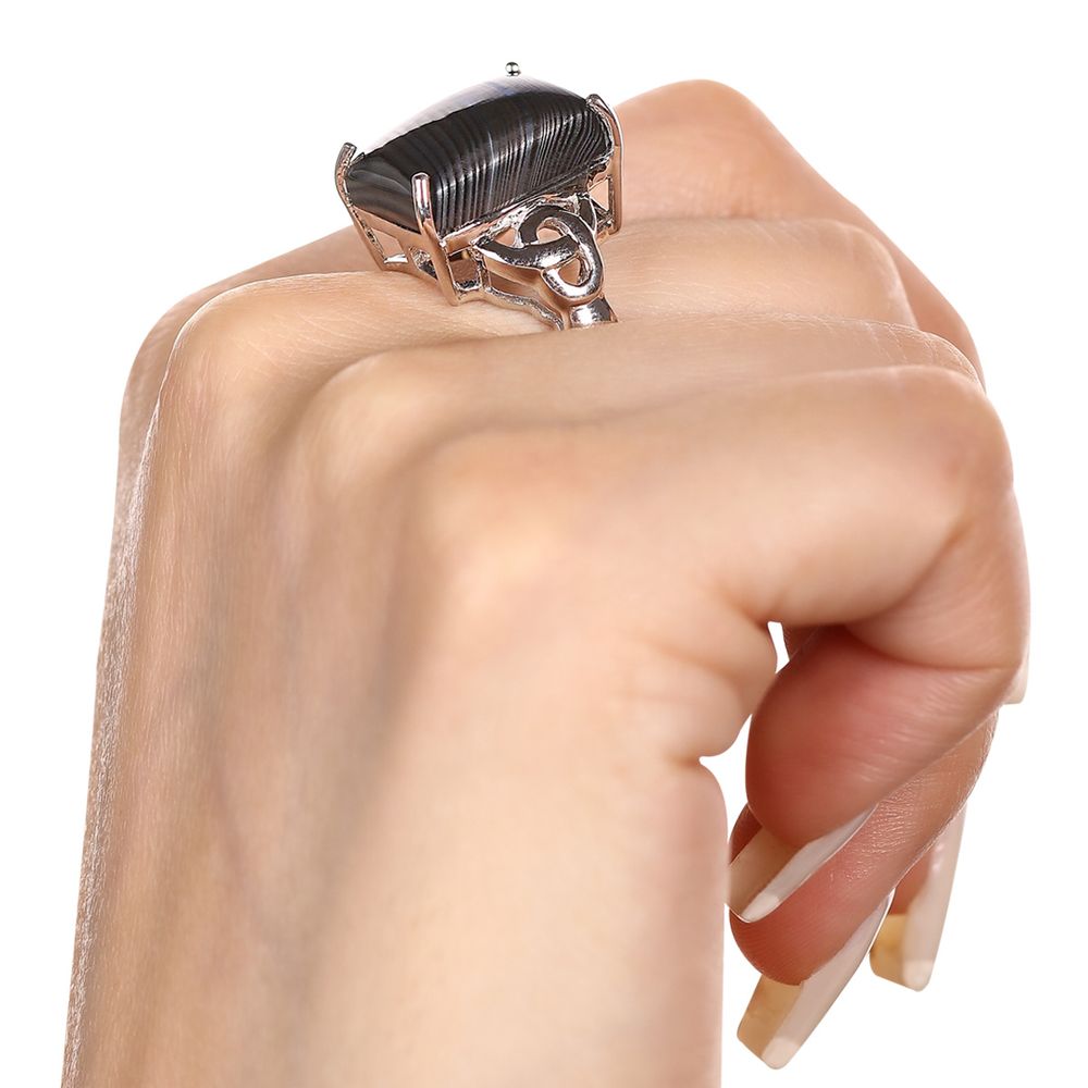 Anel em Prata 925 com Psilomelane Retangular - medalhaopersa