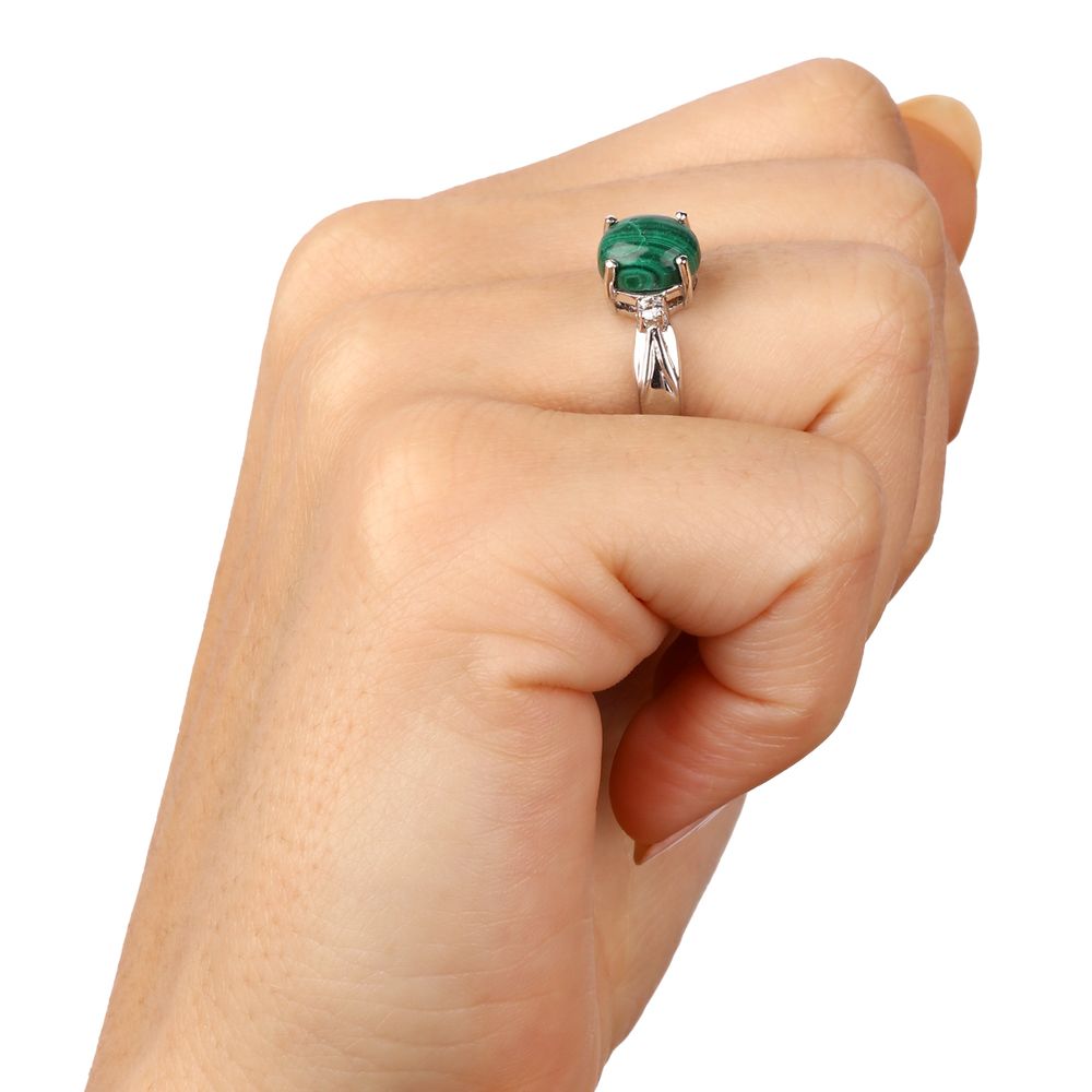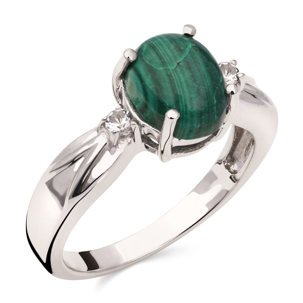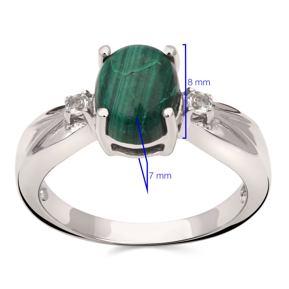Em pedras: Malaquita (2,15 cts)e Topázio Branco Prata