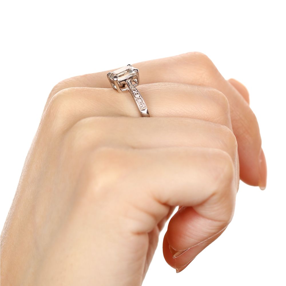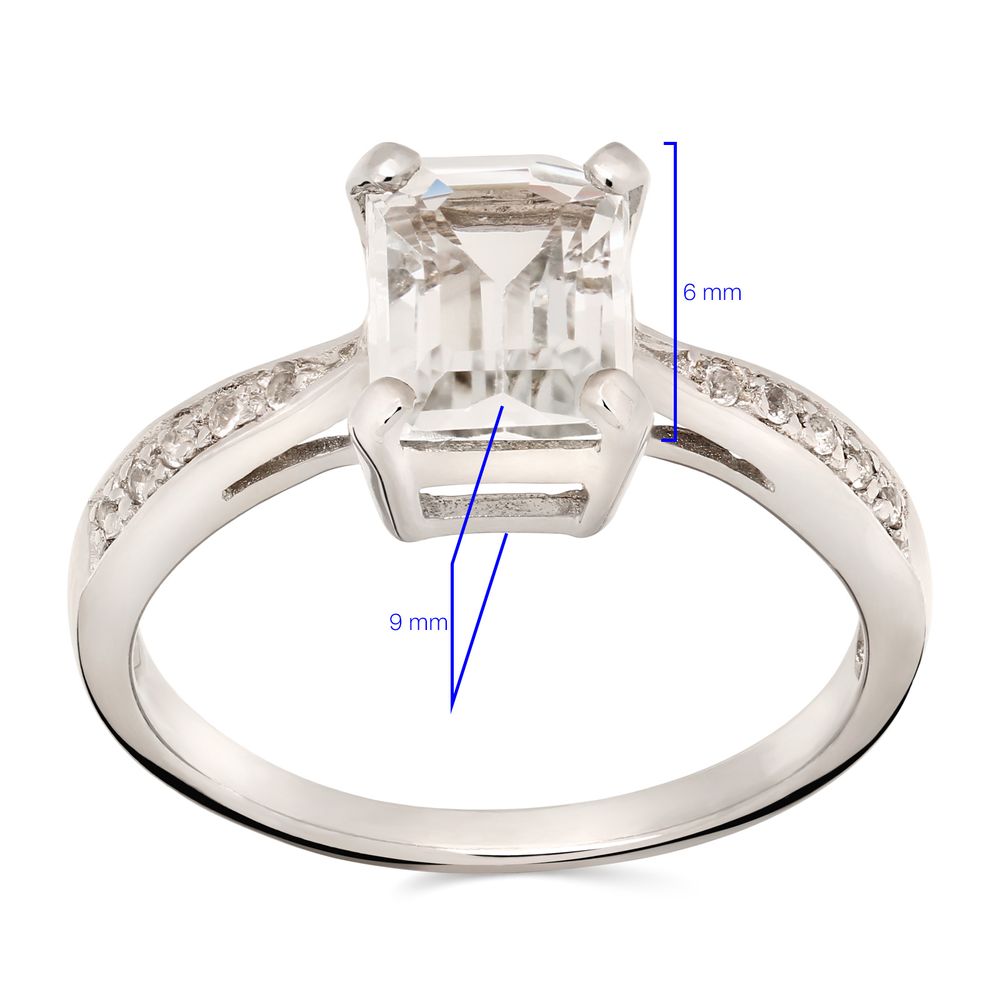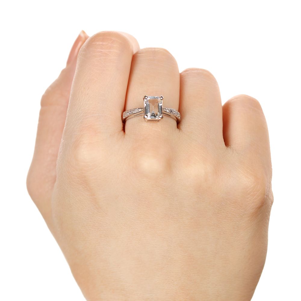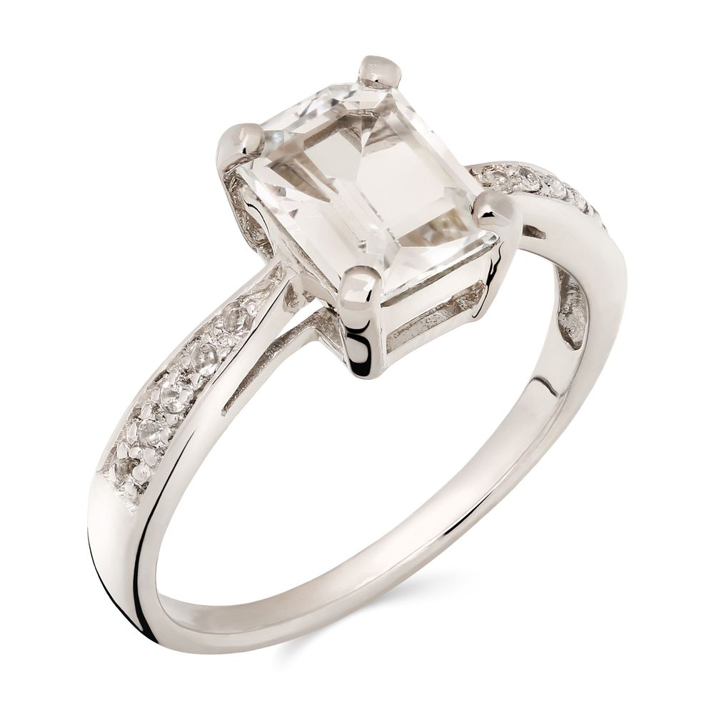 Anel de Prata com Topázio Glacial Retangular e Topázios Brancos
