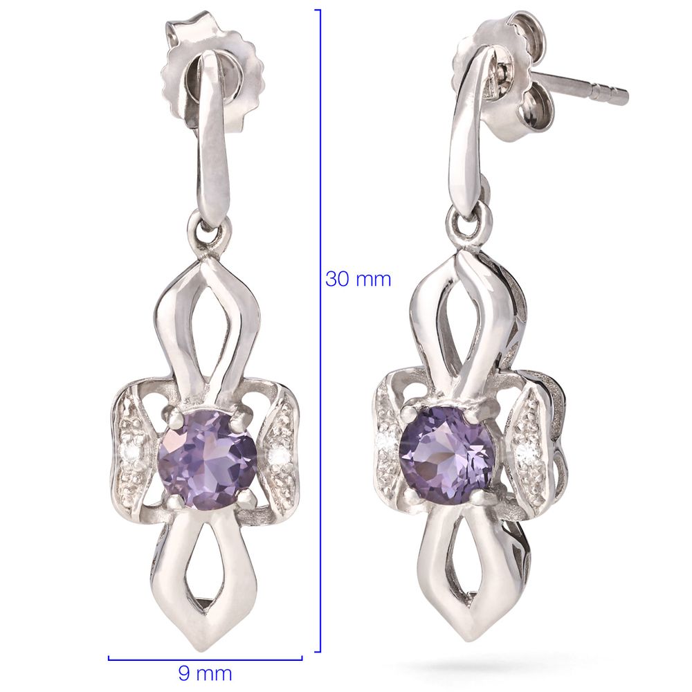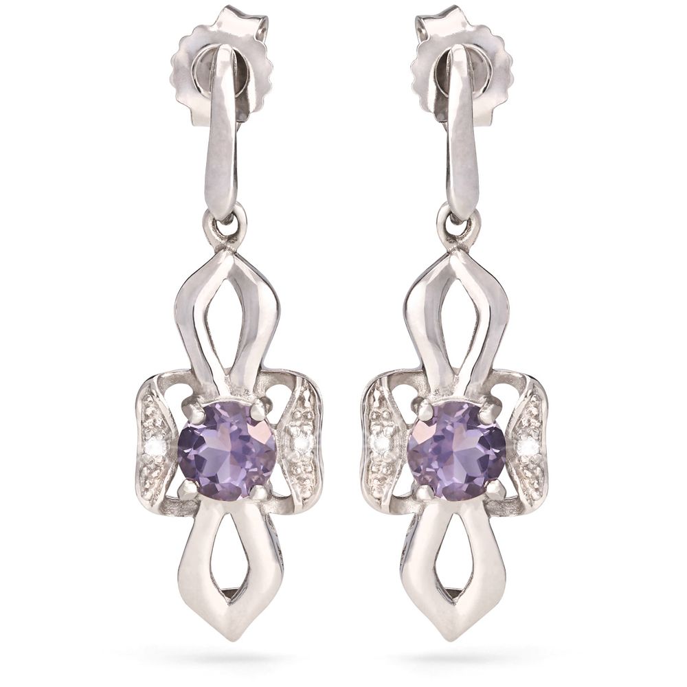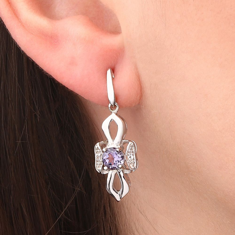 Par de Brincos em Prata 925 com Quartzos Lilás e Topázios Brancos
