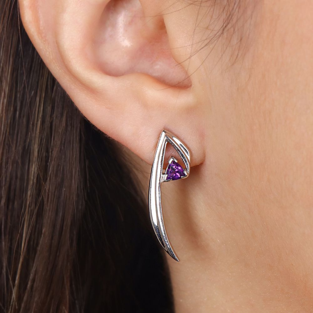 Par de Brincos em Prata 925 com Safiras Negras Estrela