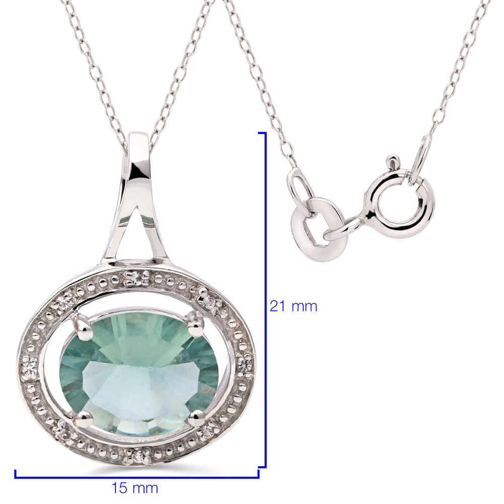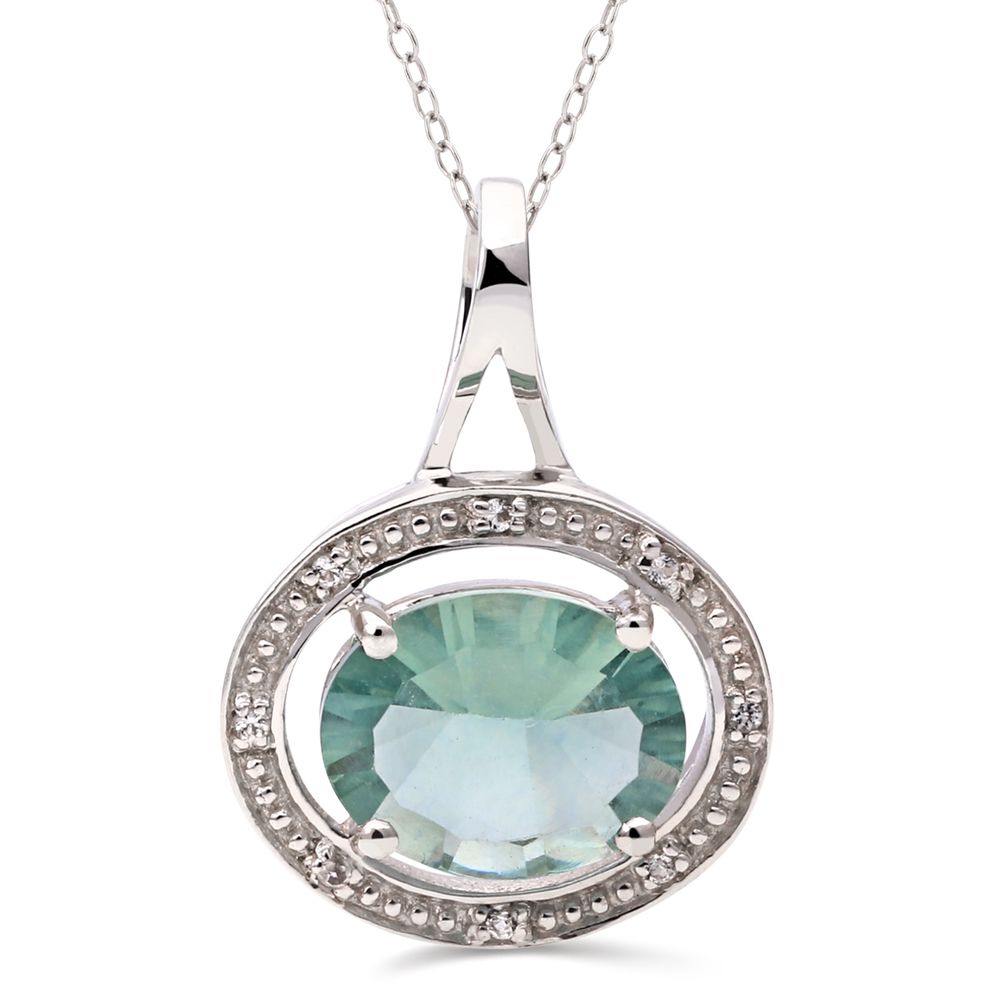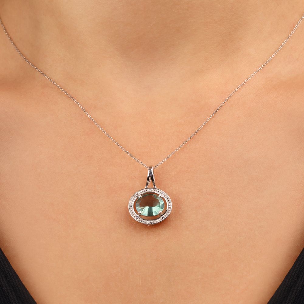 Pingente Com Fluorite Verde e Topázios Brancos Prata
