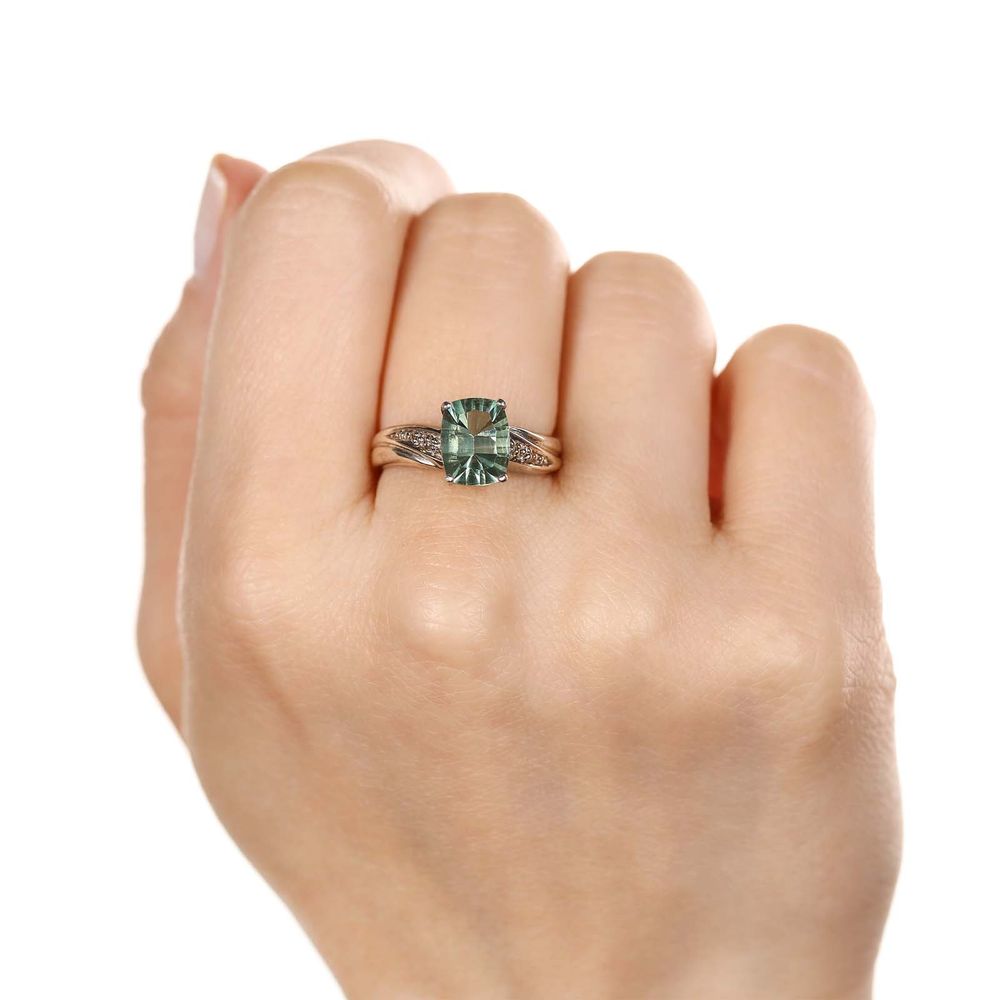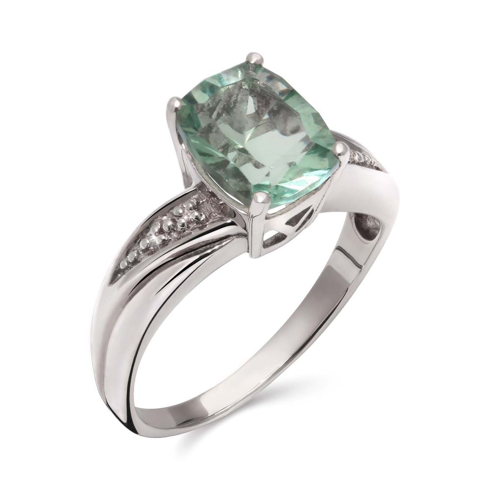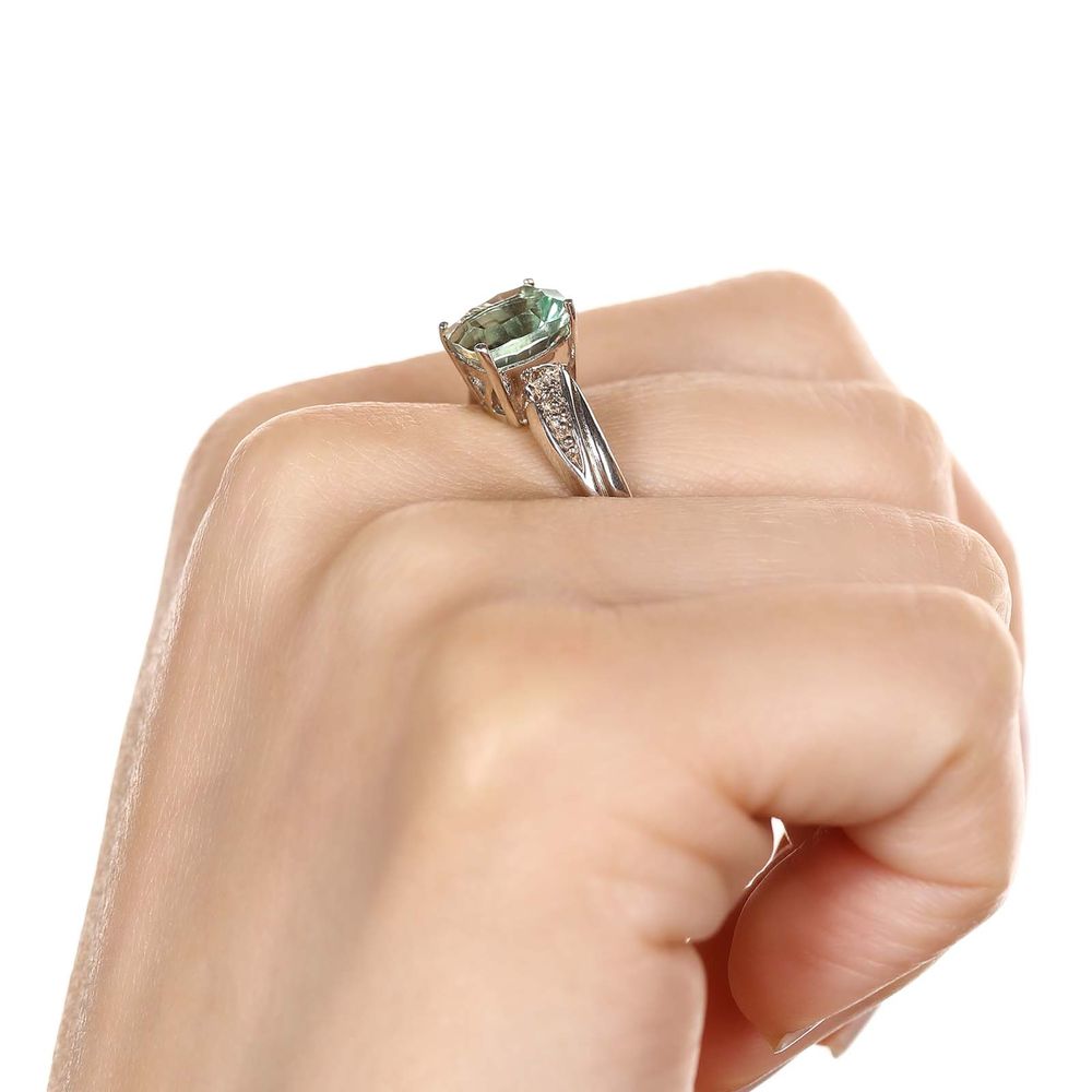Anel de Prata com Fluorita Verde e Topázios Brancos