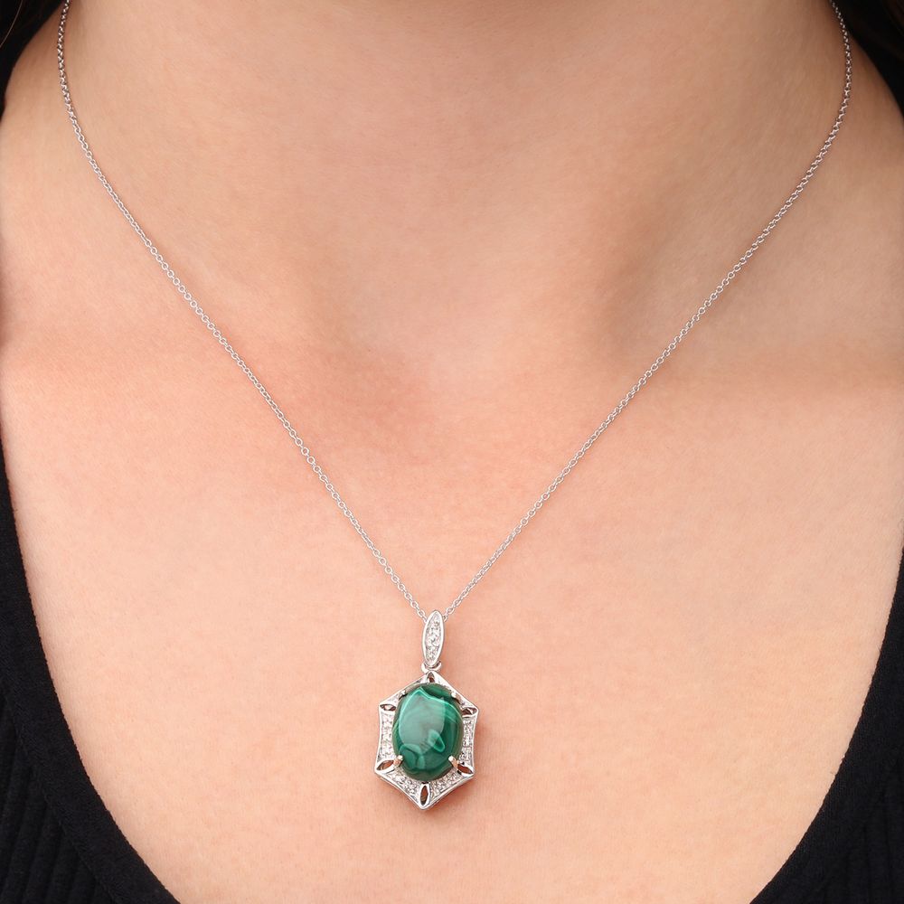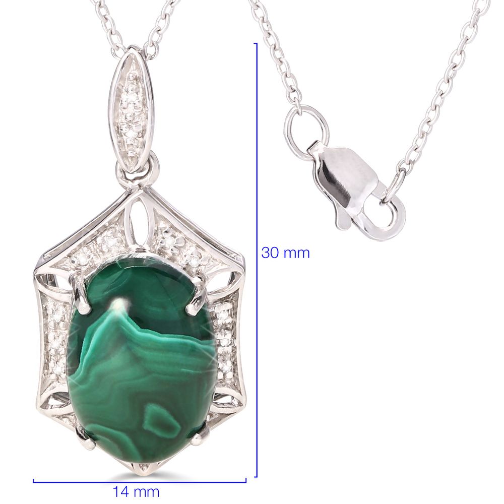 Pingente em Prata 925 com Malaquita e Diamantes