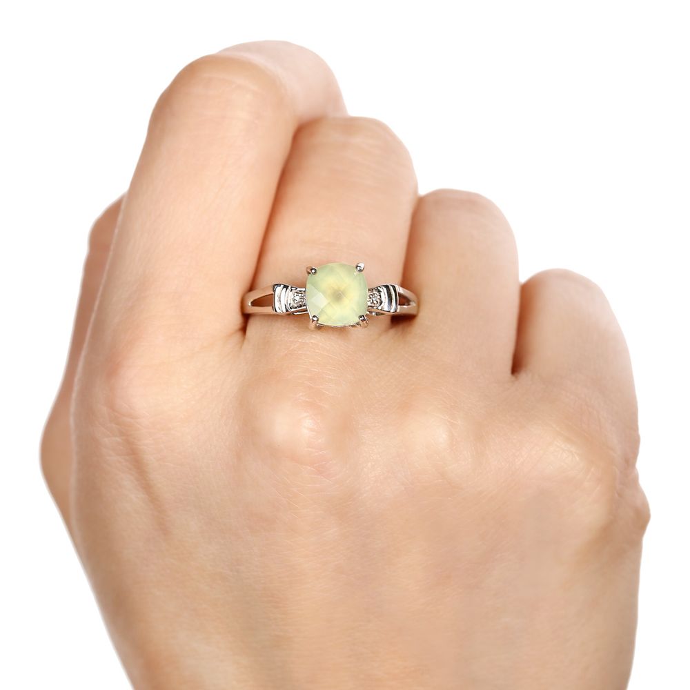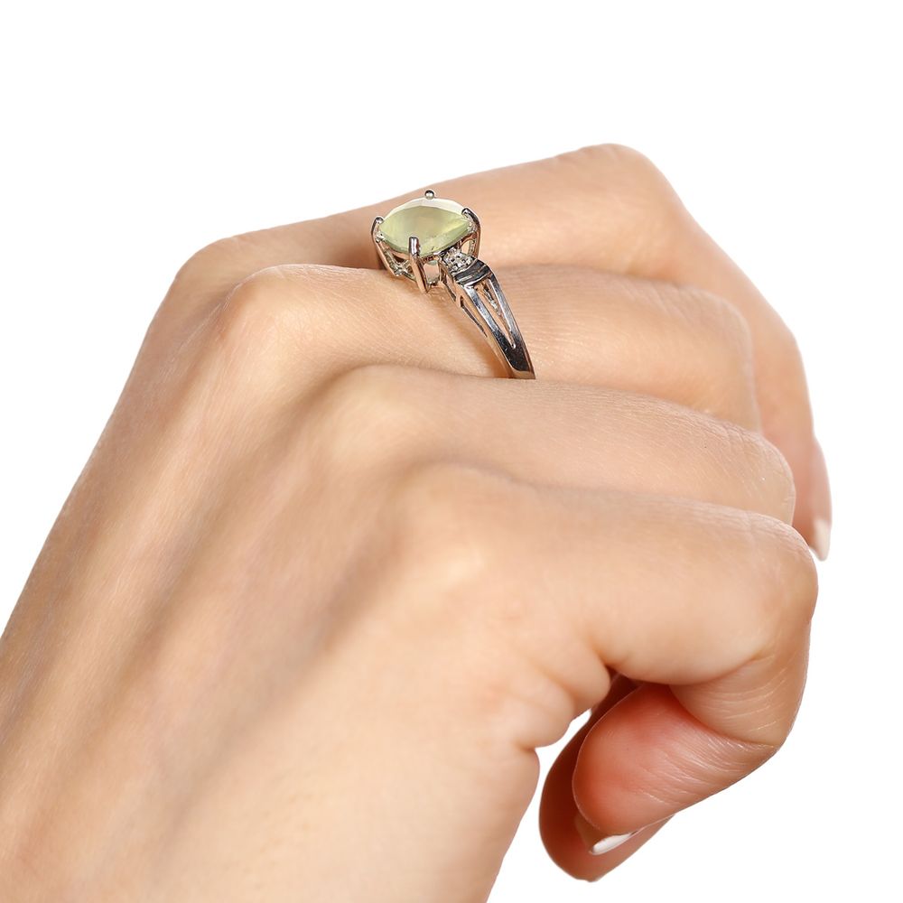 Em pedras: Prenita (1,43 cts) e Diamante