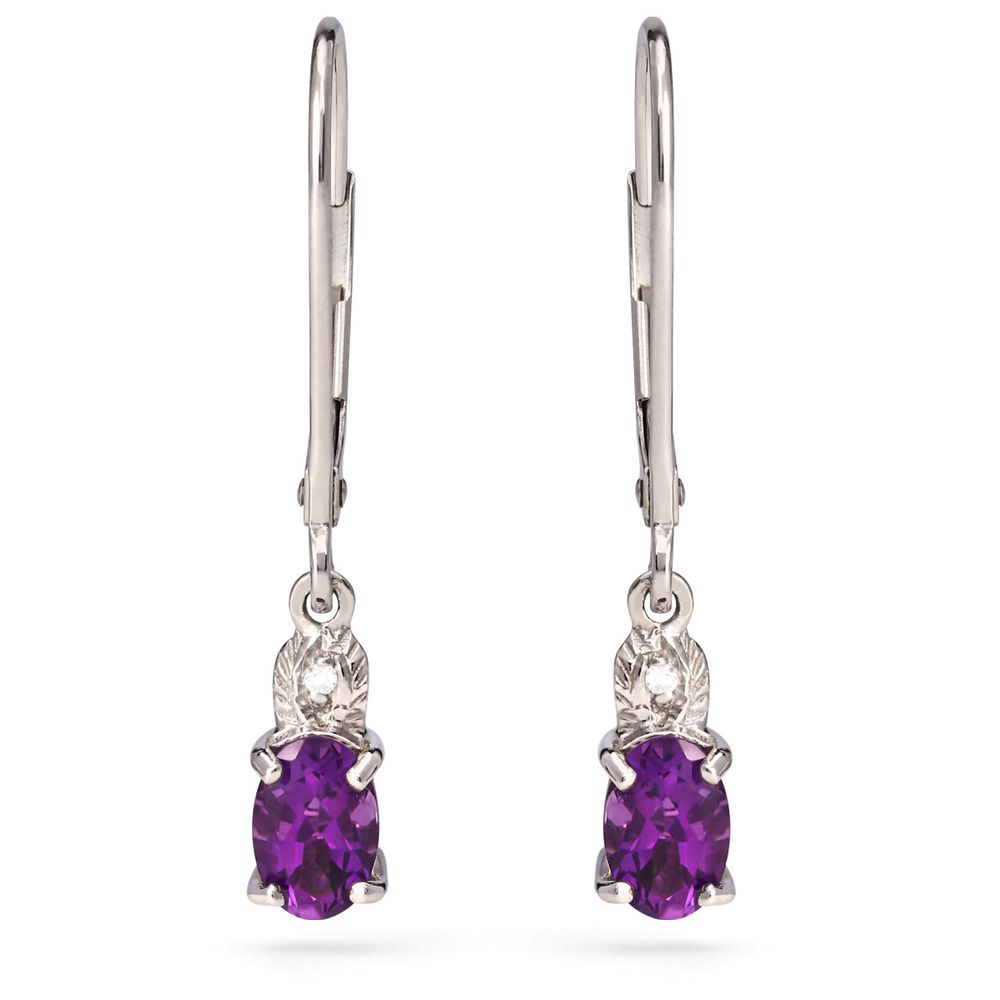 Par de Brincos em Prata 925 com Ametistas e Topázios Brancos