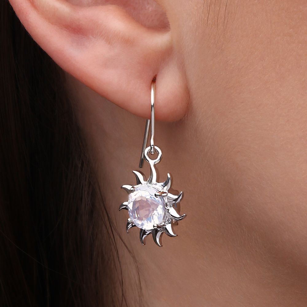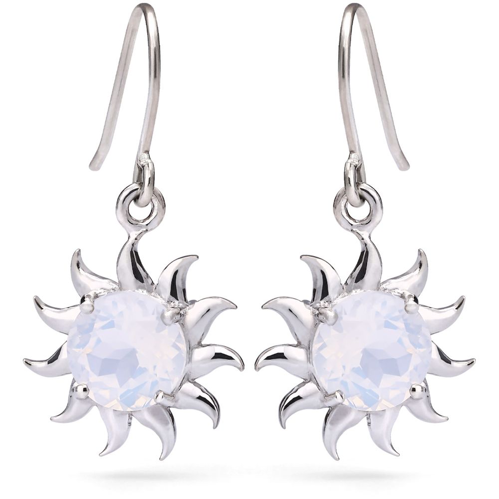Inspirado na energia solar e no encanto do luar, este par de brincos combina design radiante com a beleza hipnotizante do quartzo Blue Moon.