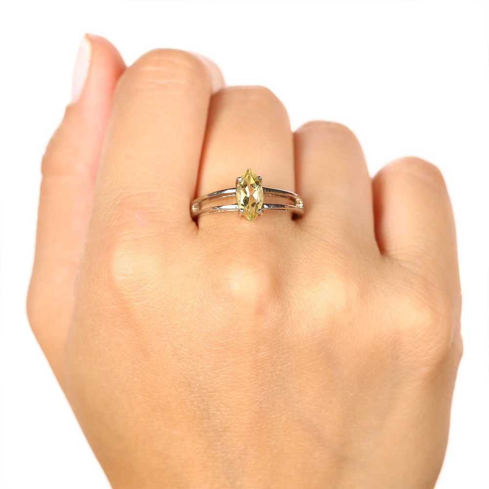 Anel em Prata 925 Citrino Limão Navete - 169920