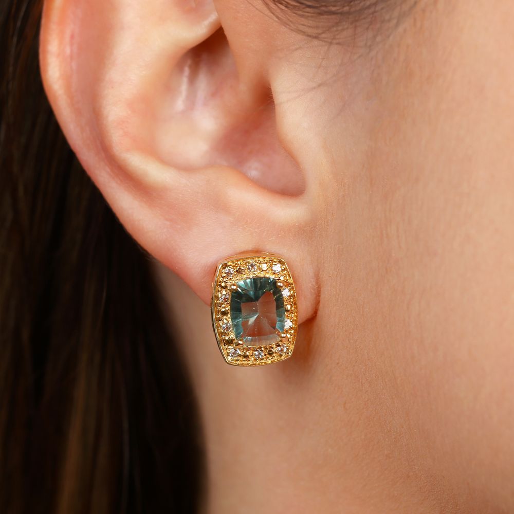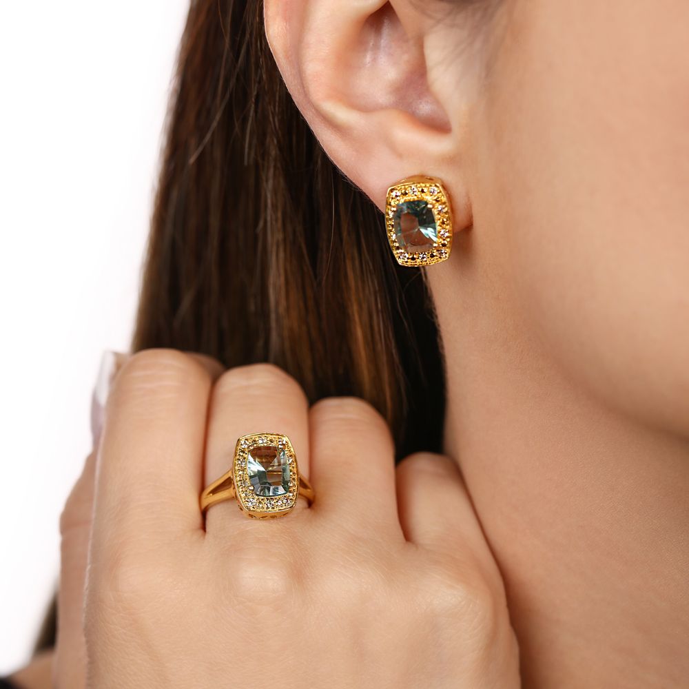 Anel, Brinco De Prata com Fluorita Verde e Topazios Brancos