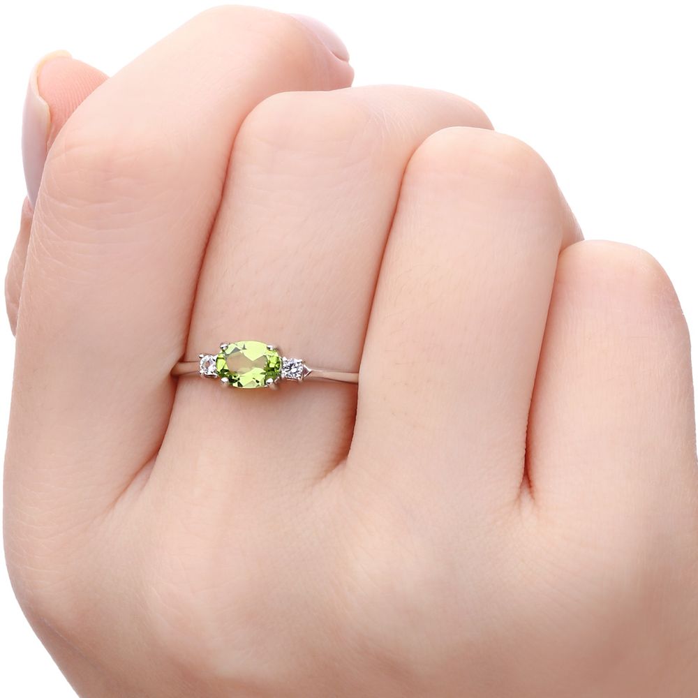Anel Linha Prata com Peridoto e Topazios Brancos