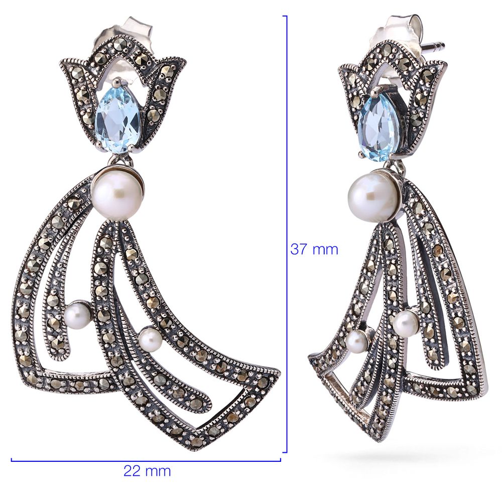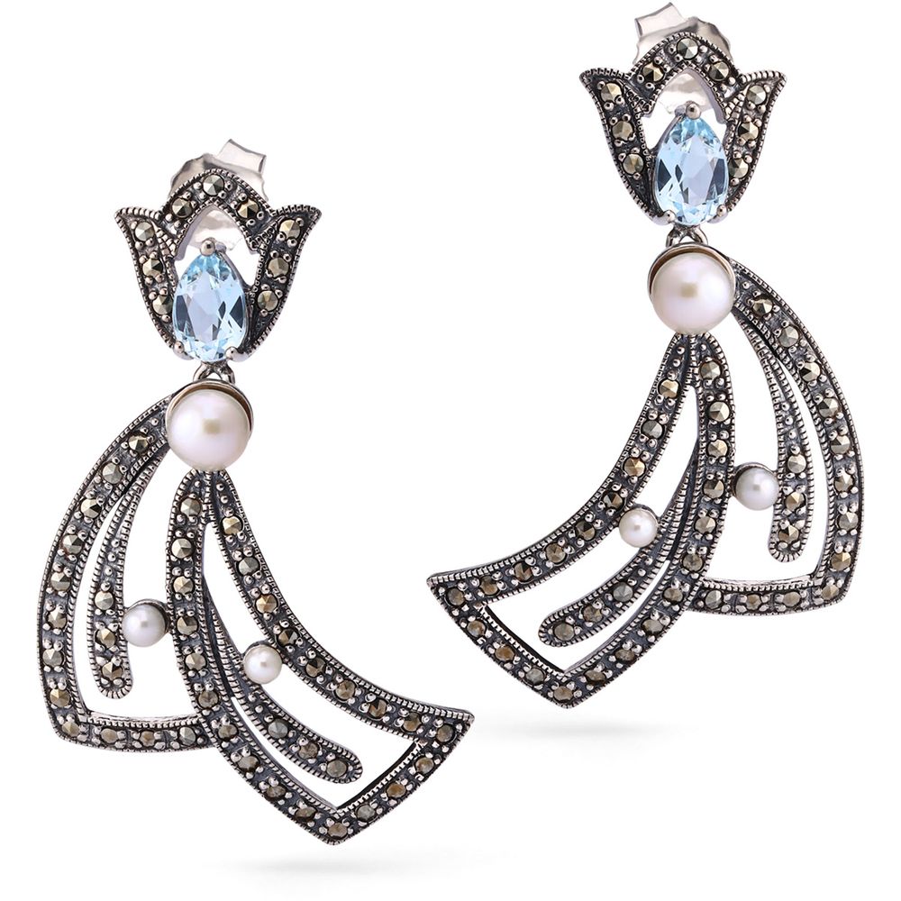 O Topázio Azul, com sua cor vibrante e brilho intenso, é a pedra perfeita para iluminar qualquer look. Combinado com a suavidade da Pérola e o charme atemporal das Marcassitas, esse par de brincos traz um equilíbrio perfeito entre o clássico e o contemporâneo.
