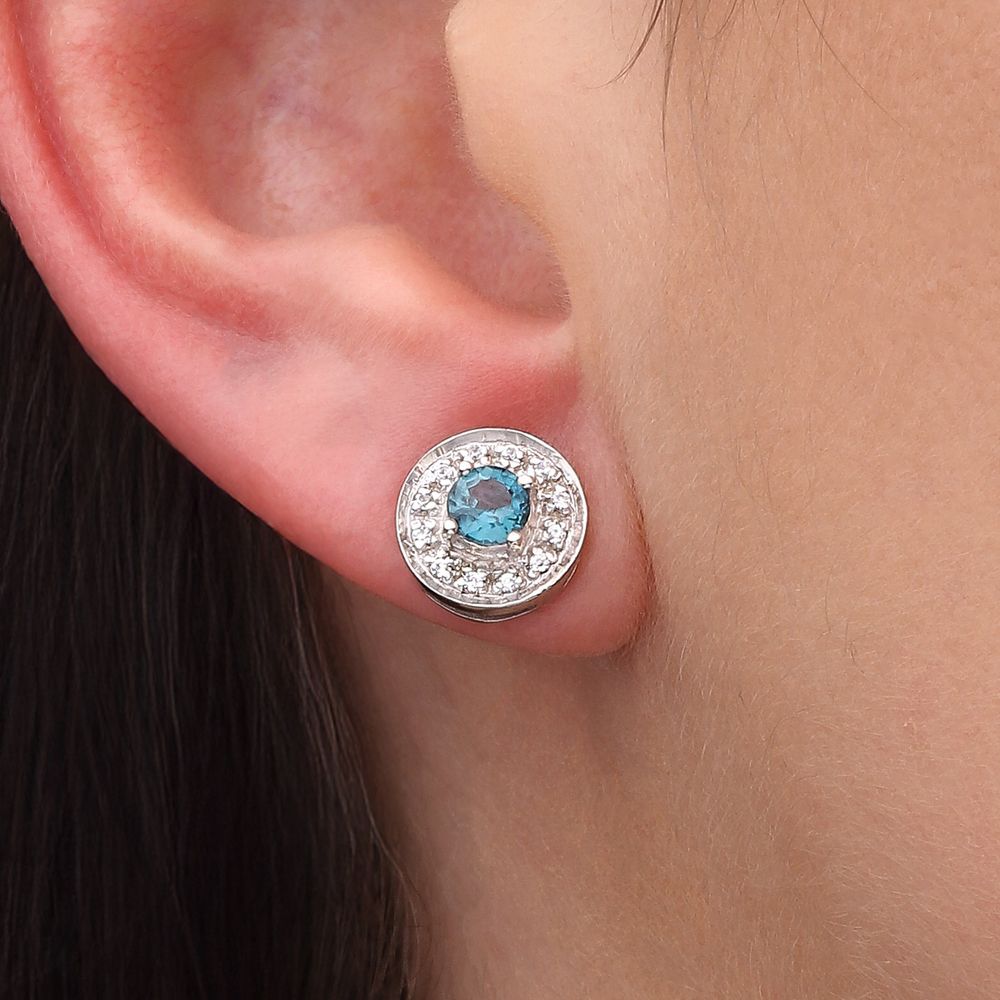 Par de Brinco Com Kianites e Zirconias Linha Prata