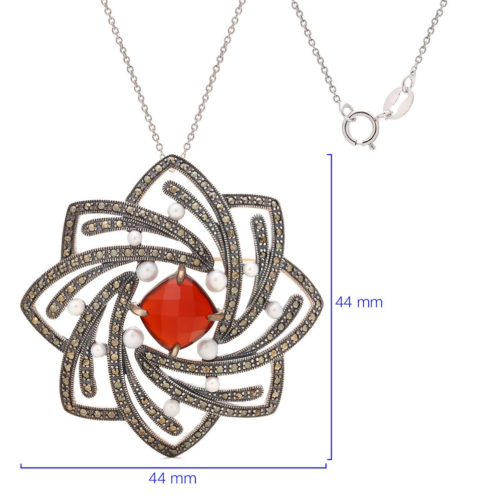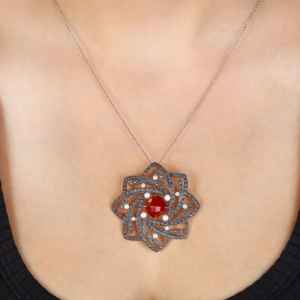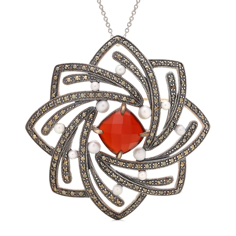 Pingente Broche de Cornalina (3,19 Cts),Pérolas e Marcassitas