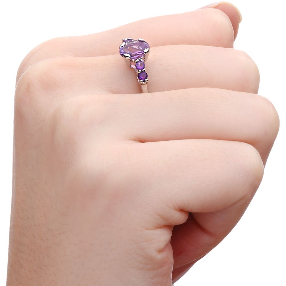 Inspirado nas formas geométricas e na força das gemas naturais, este anel com ametista equilibra delicadeza e presença.
