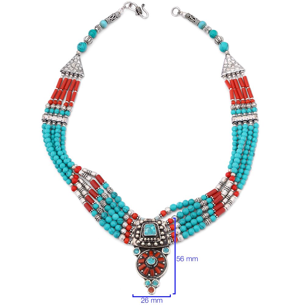 Colar Linha Nepal Com Turquesa, Coral e Ágata
