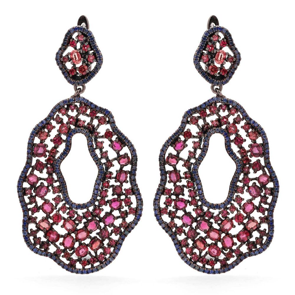 Par de Brinco de Prata Luxo com Rubis e Safiras Azuis