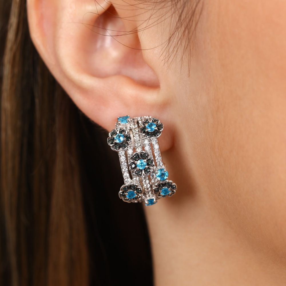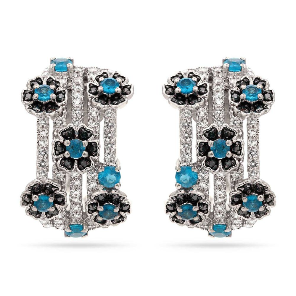 Par de Brinco de Prata Floral com Apatitas Neon e Zirconias