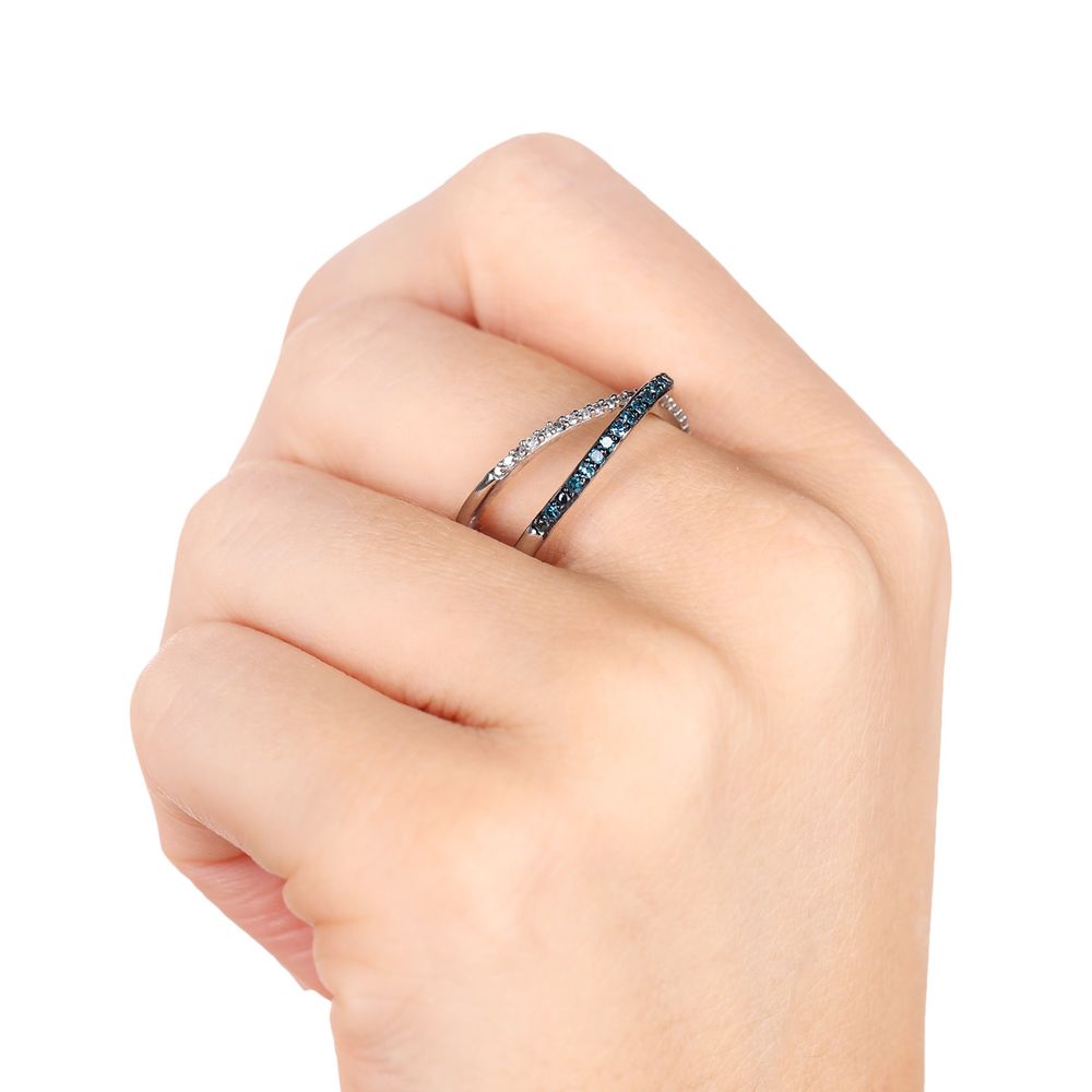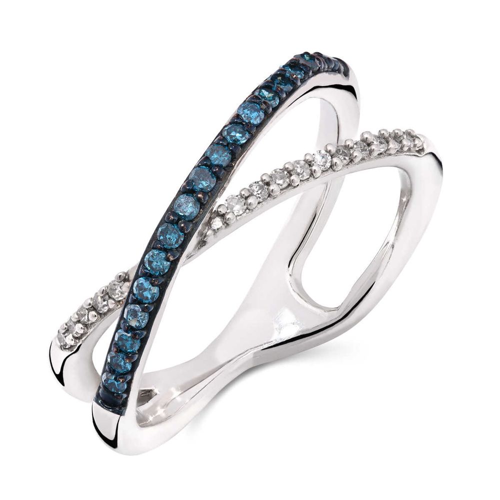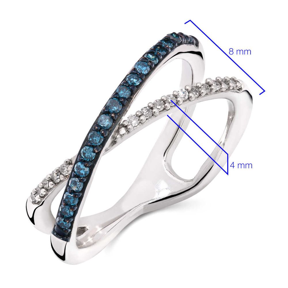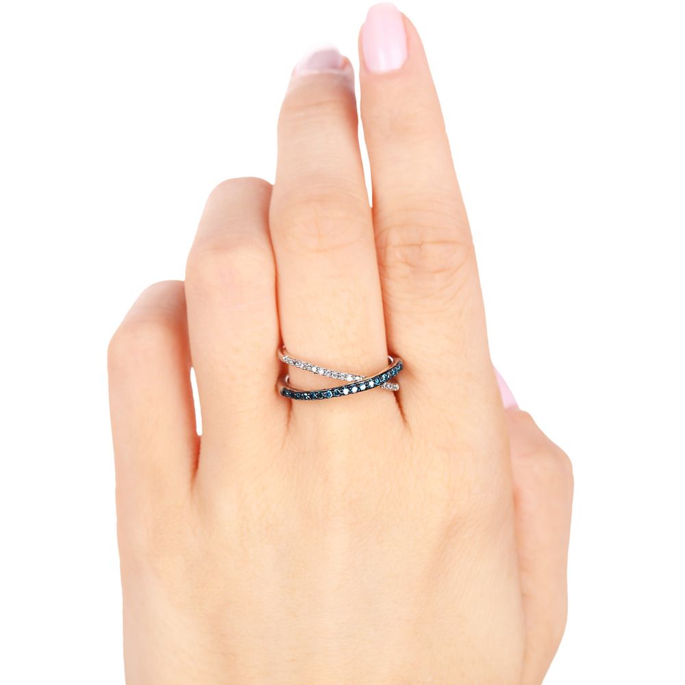 Anel de Prata x com Diamantes Azuis e Brancos