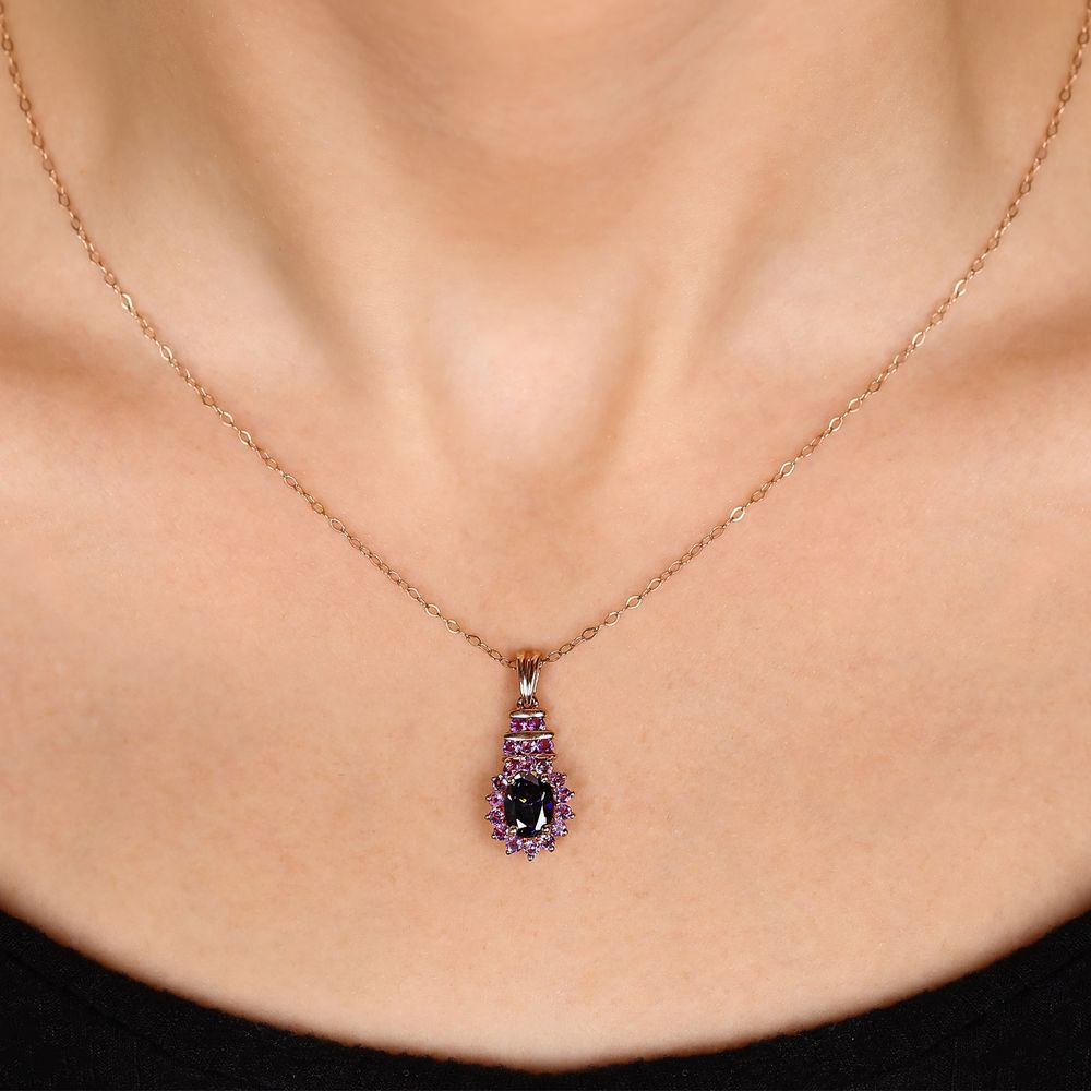 Para compor o pingente e ficar em perfeita harmonia, a jóia é acrescida de ametistas africanas.