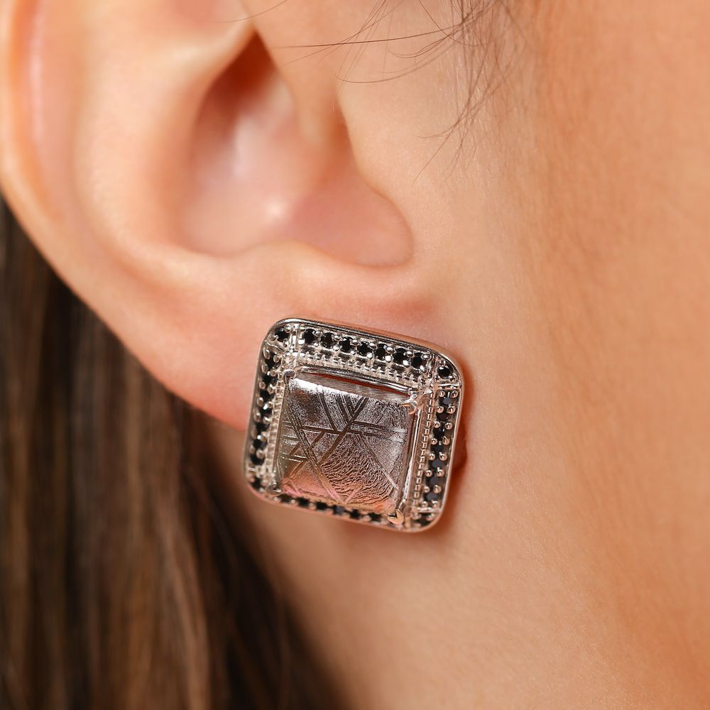 Par de Brinco em Prata 925 com Tanzanitas e Topázio Branco