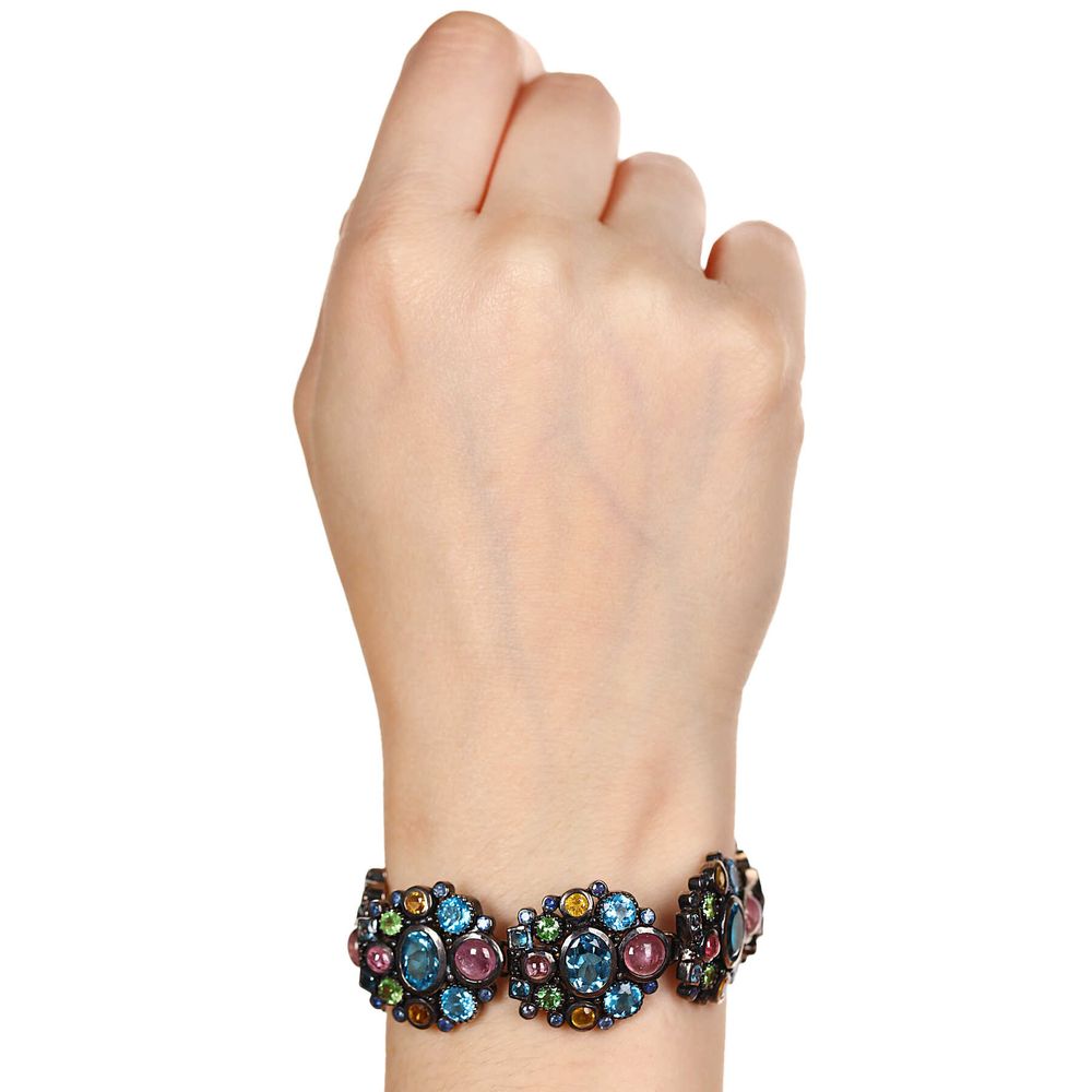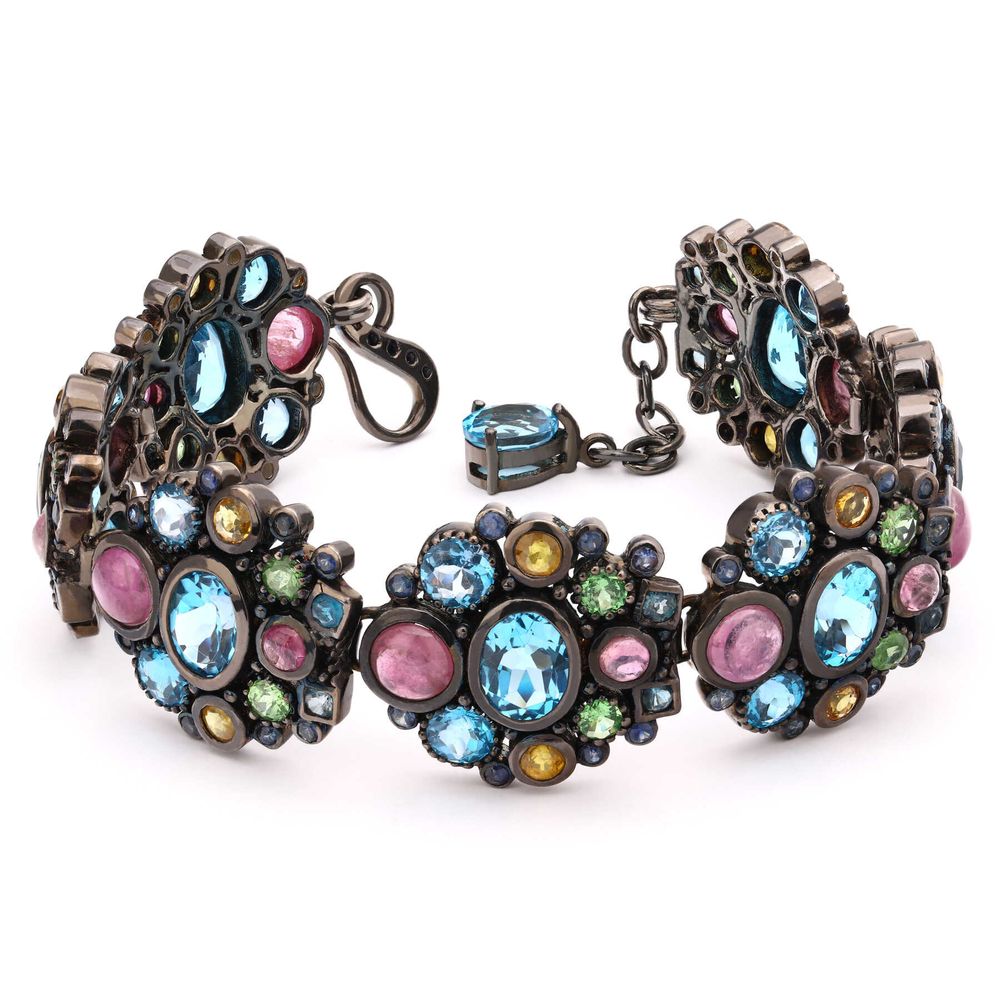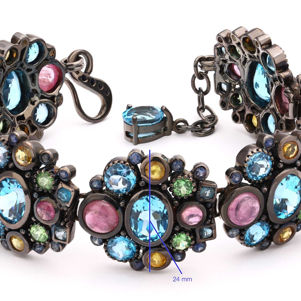 Em pedras: Safiras, Citrinos, Granadas eTopázios London Blue totalizando 18,8 cts em gemas.