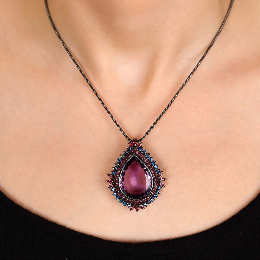 Em pedras: Ametista, Rubis e Safiras Azuis (Aprox. 29 cts)