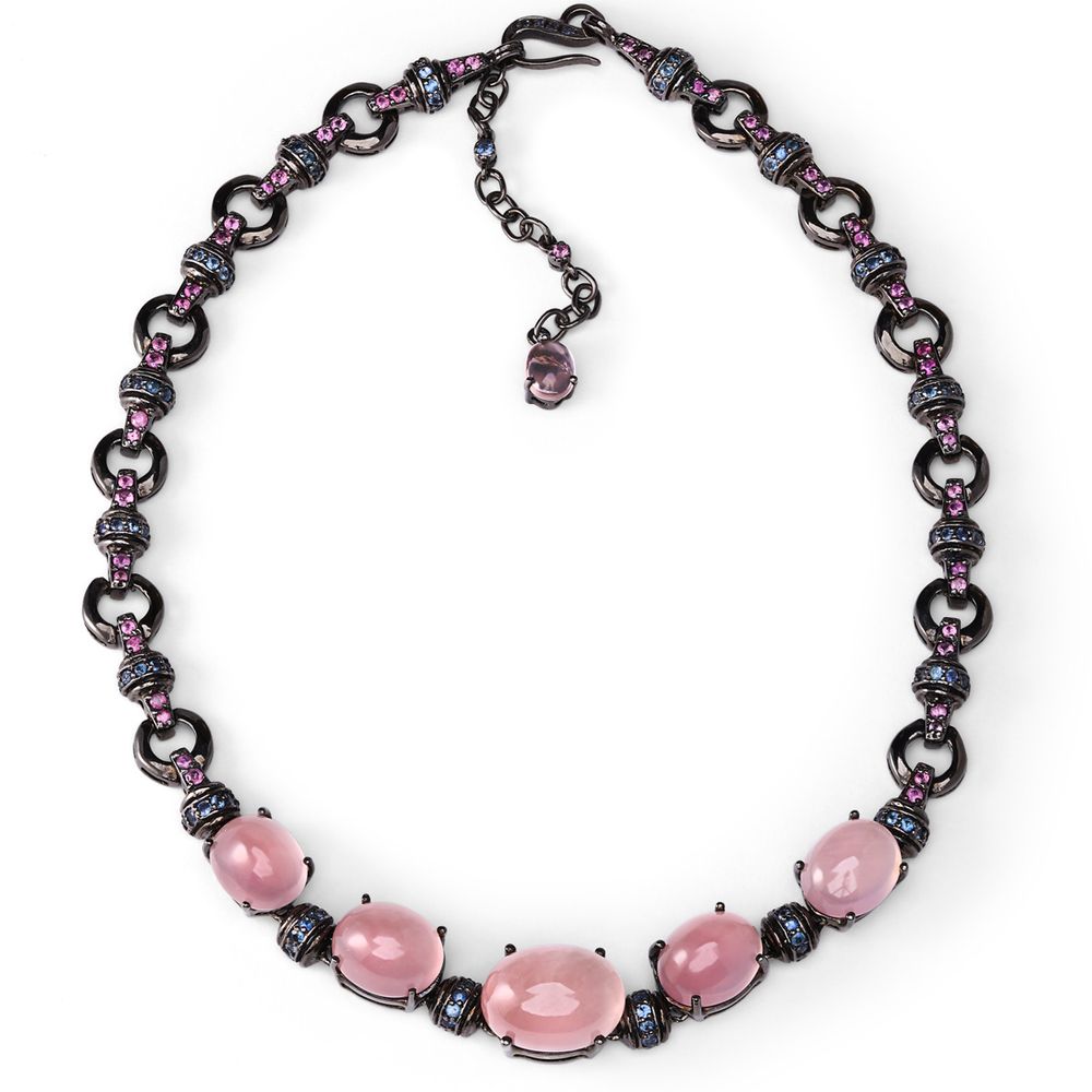 Este colar combina a delicadeza do Quartzo Rosa,