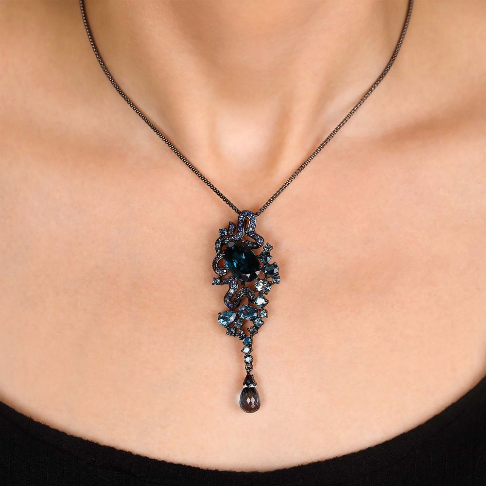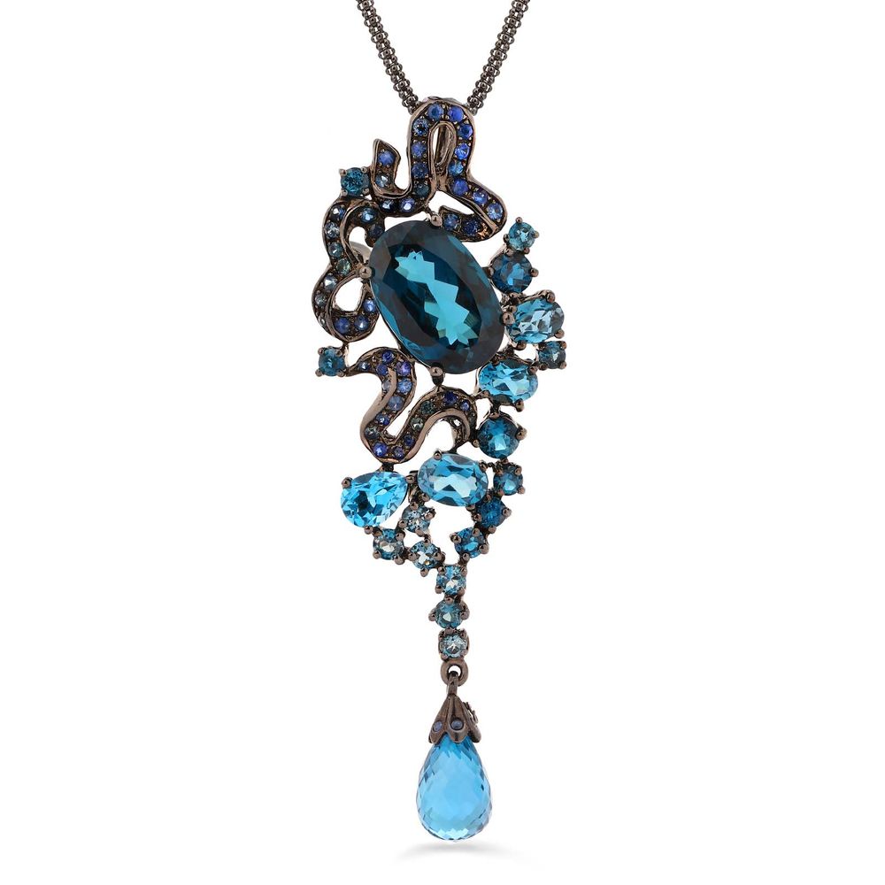 Pingente de Prata Luxo com Safiras Azuis e Topazios London Blue