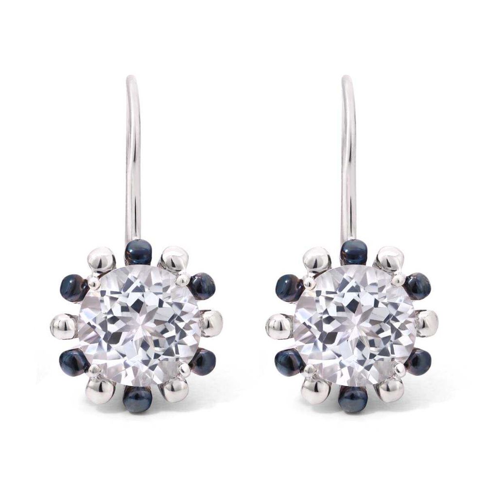 Par de Brinco argolinha em Prata 925 Sol com Safiras