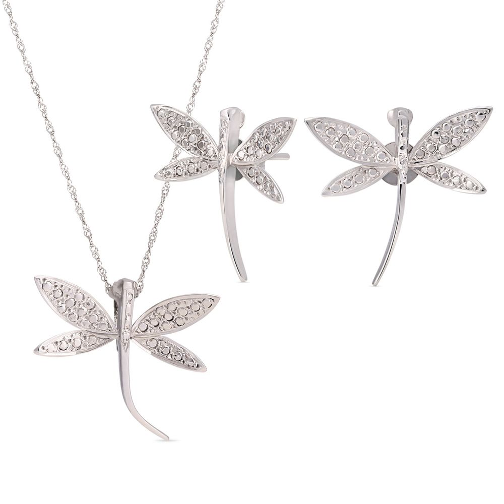Pingente e Par de Brincos em Ouro Branco 18k com Peridotos e Ametistas