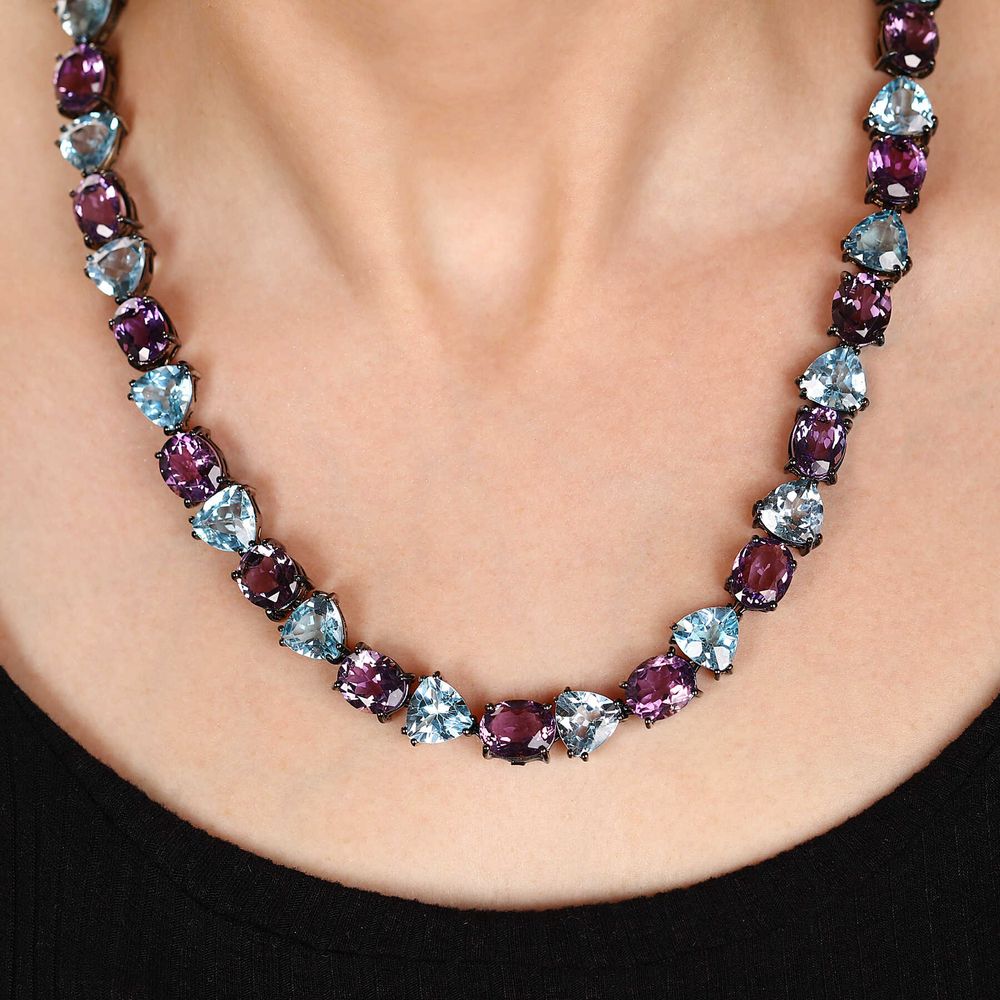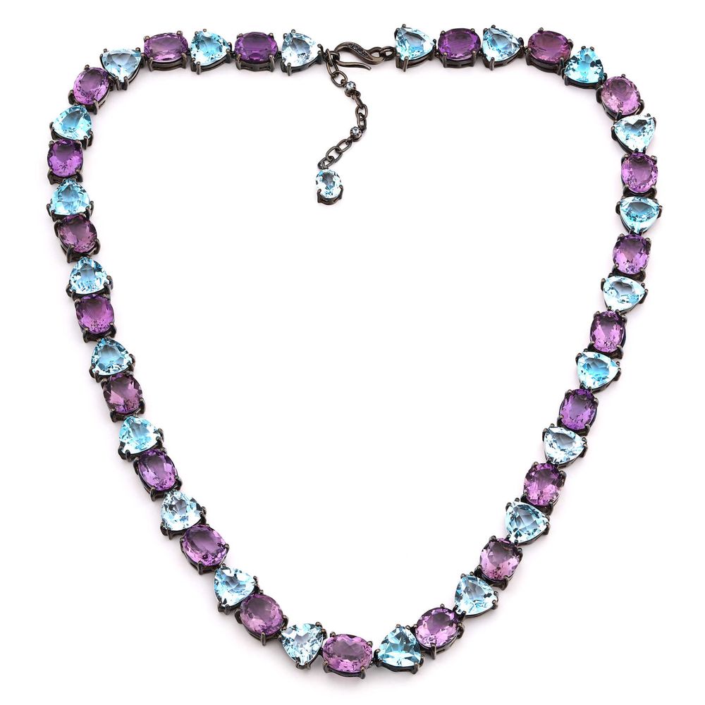 Em pedras: 21 Ametistas (137,3 cts), 6 Safiras Azuis (20 pts), 23 Topázios Azuis (96,3 cts)