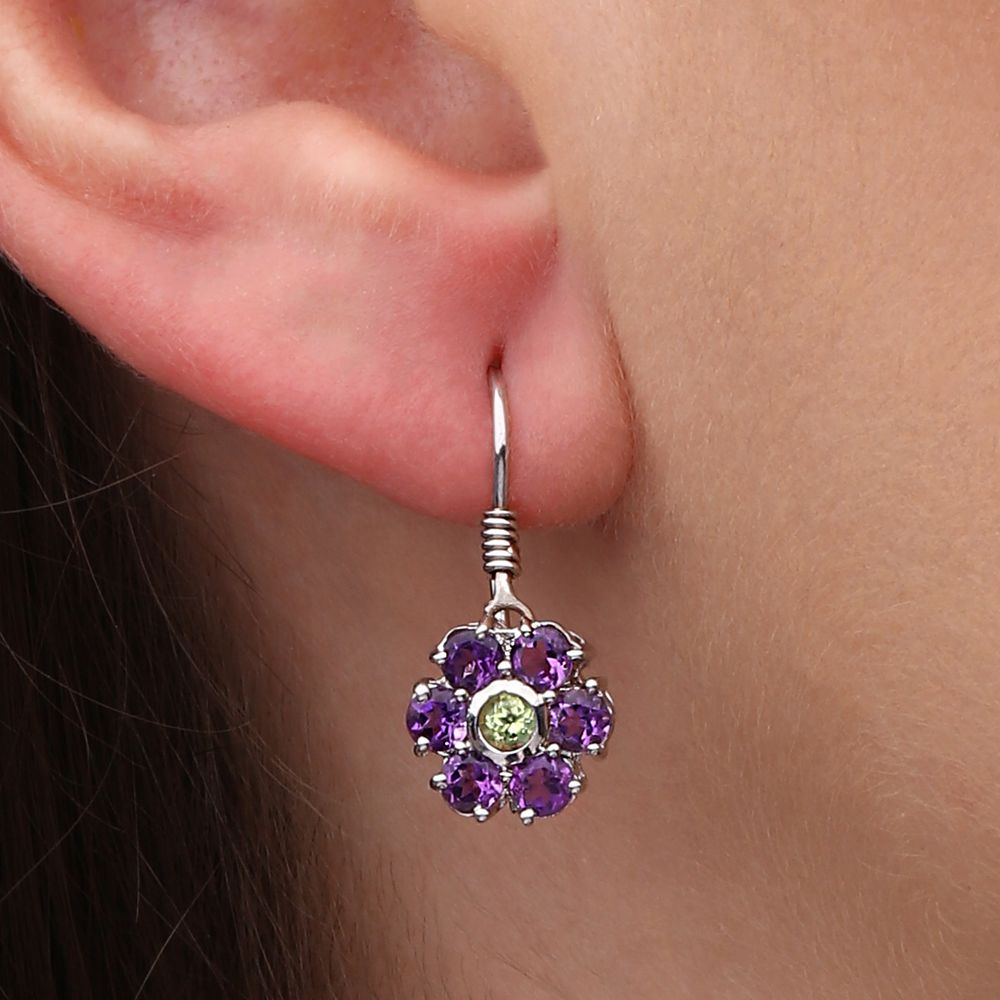 Encante-se com a beleza do conjunto flor, composto por brinco e pingente com ametistas e peridotos. As pedras naturais, cuidadosamente lapidadas em formato floral, criam uma combinação harmoniosa entre o roxo suave da ametista e o verde vibrante do peridoto. Um design delicado e feminino, perfeito para quem aprecia joias com personalidade e inspiração na natureza. Ideal para presentear com elegância ou valorizar o seu visual com um toque de cor e sofisticação.