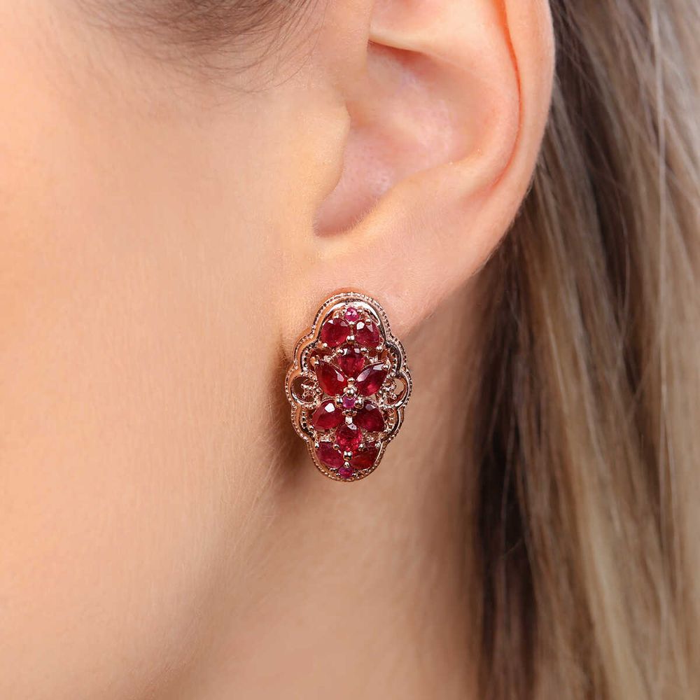 Estrutura rendada de prata, extrema delicadeza dos formatos que se complementam com divinas gemas de rubi.