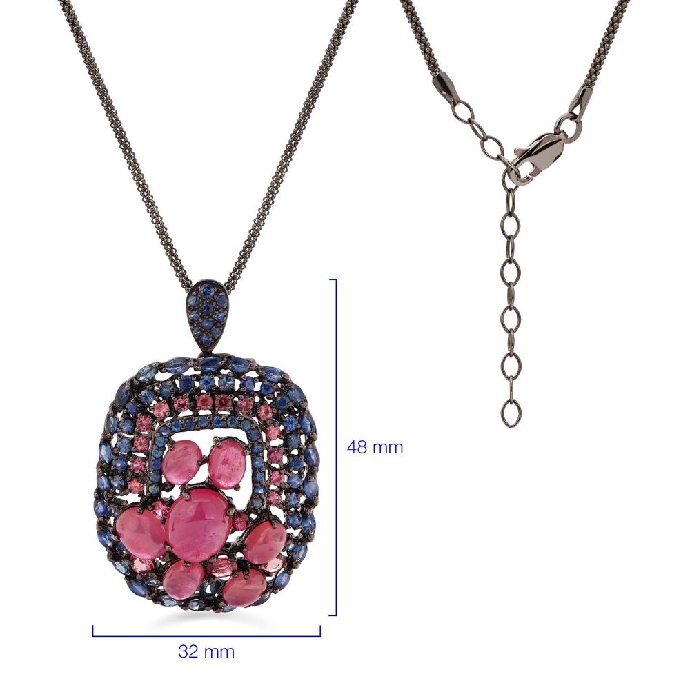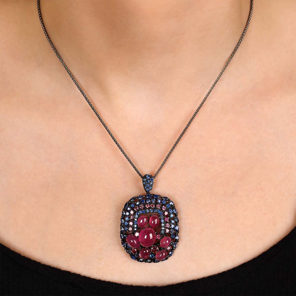 Pingente de Prata Luxo com Rubis, Safiras Azuis e Safiras Rosas