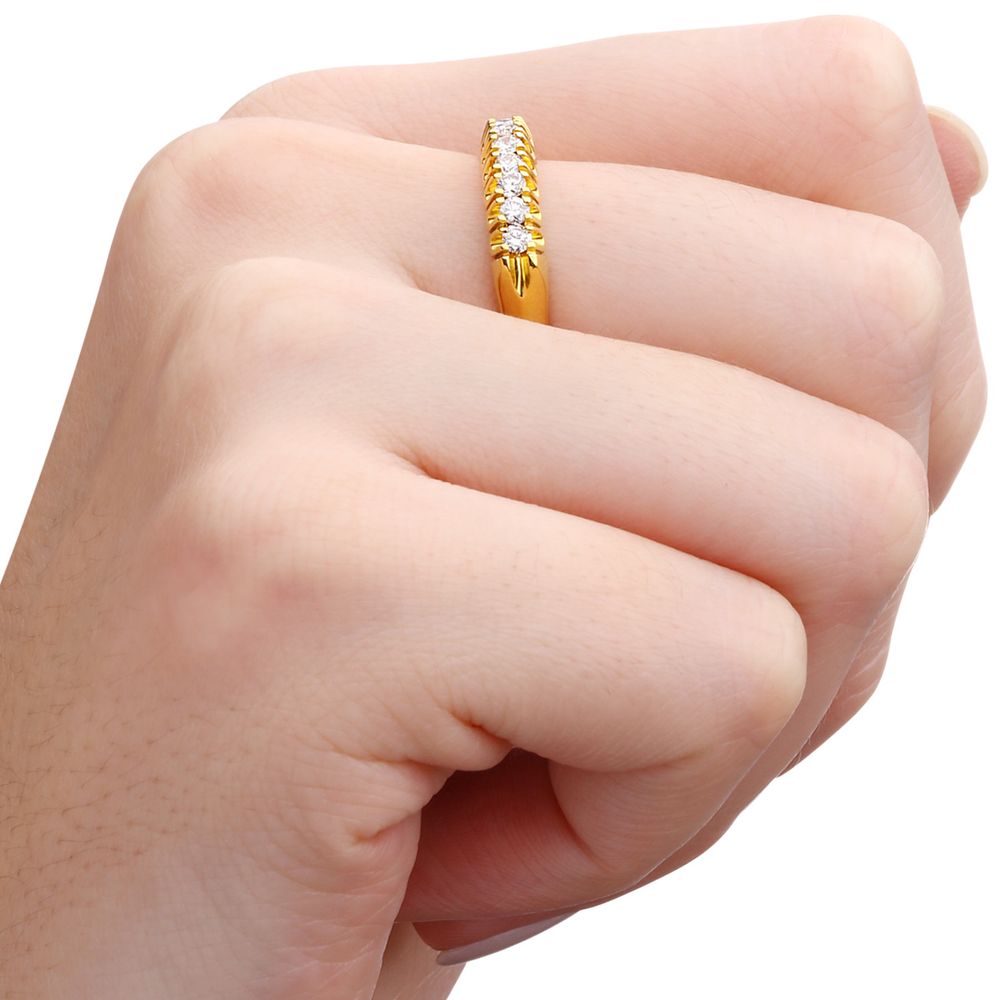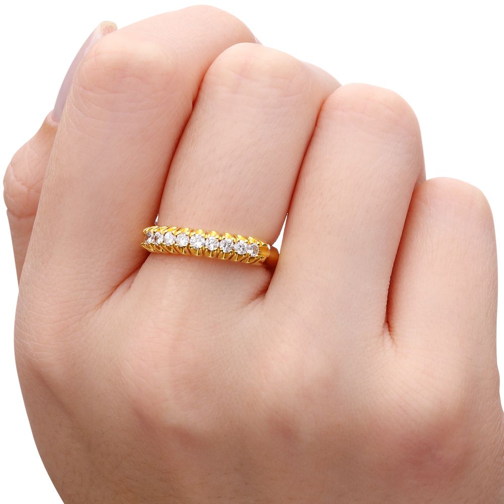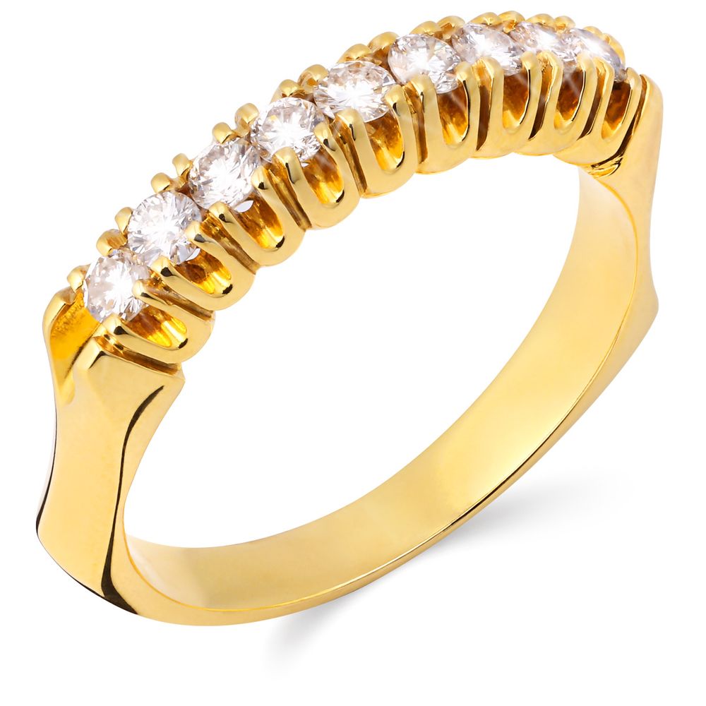 Meia Aliança em Ouro Amarelo 18 k com 9 Diamantes
