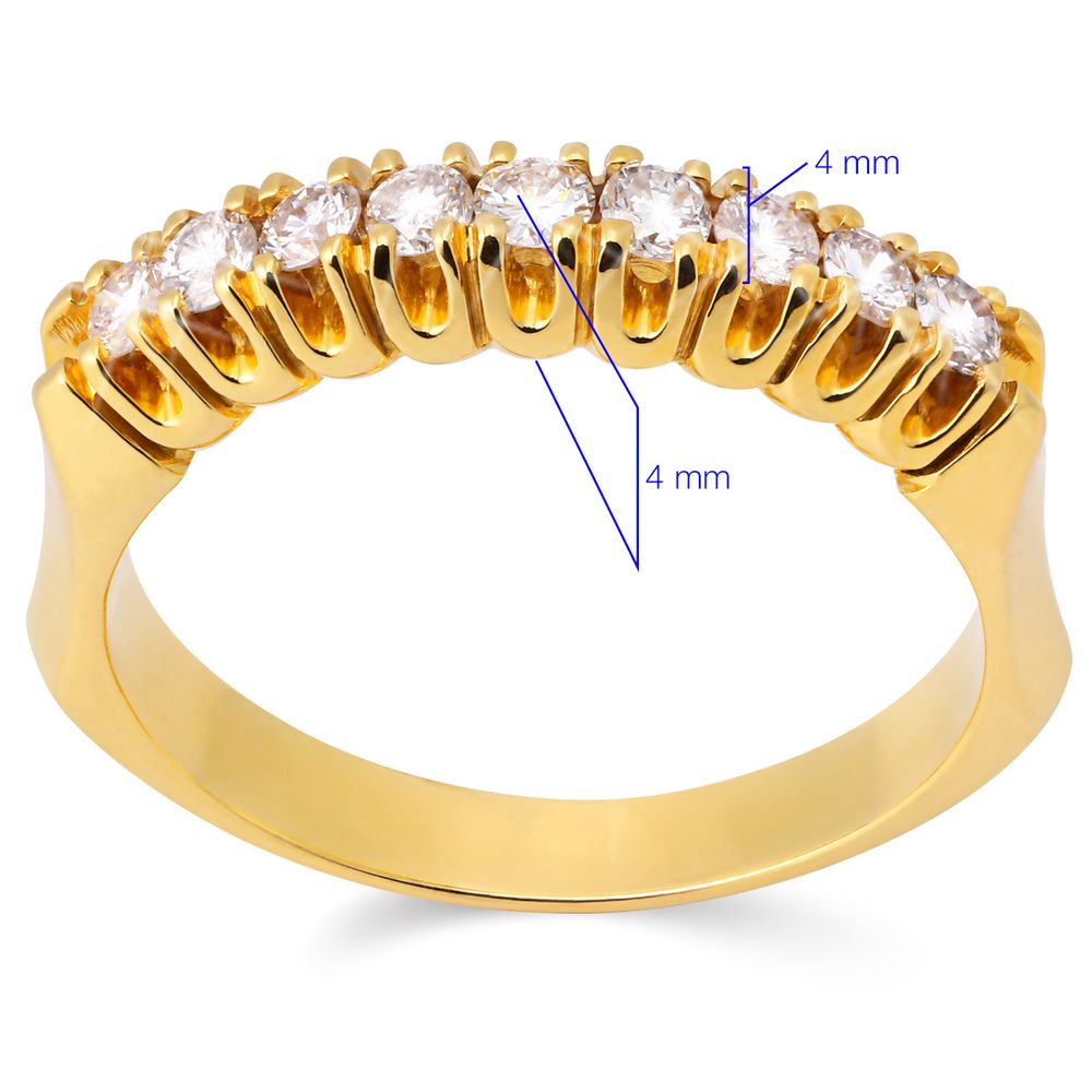 Meia Aliança com 9 Diamantes Ouro Amarelo