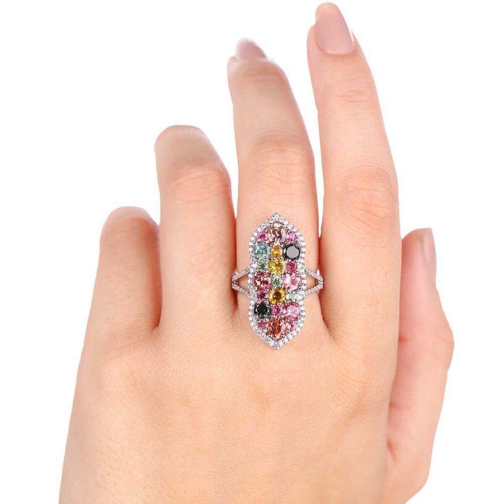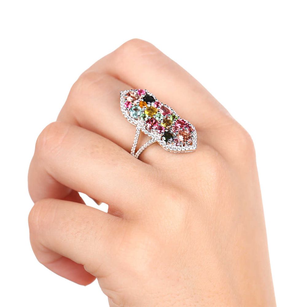 Anel de Prata com Turmalinas e Zircônias